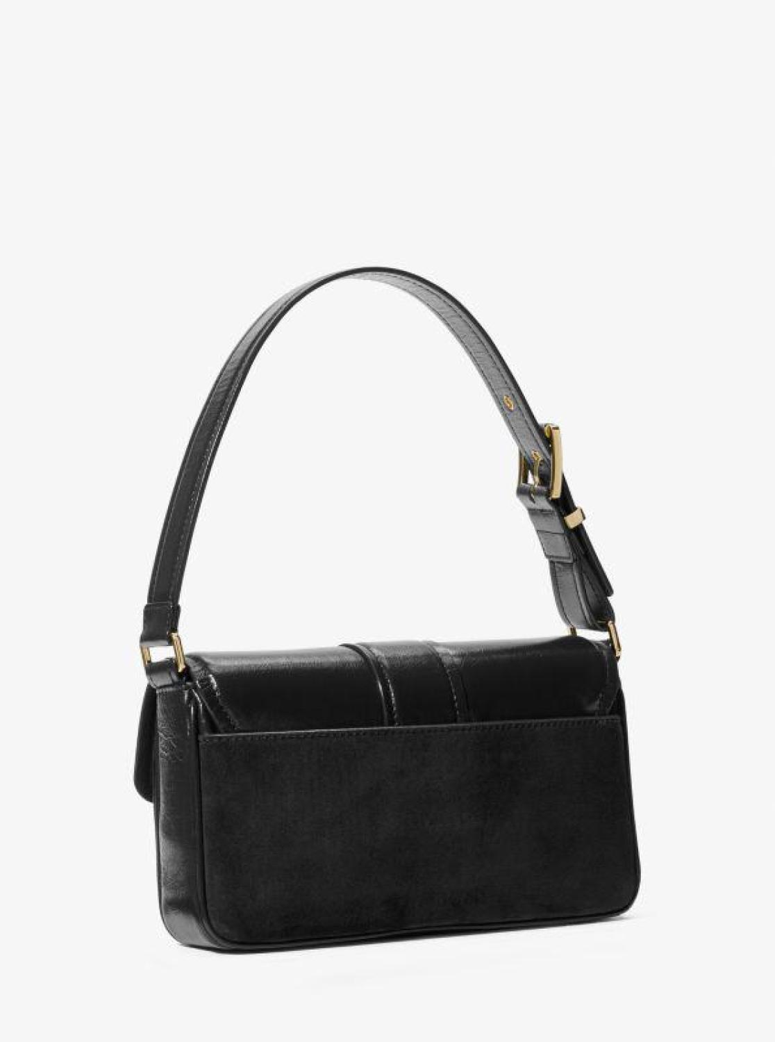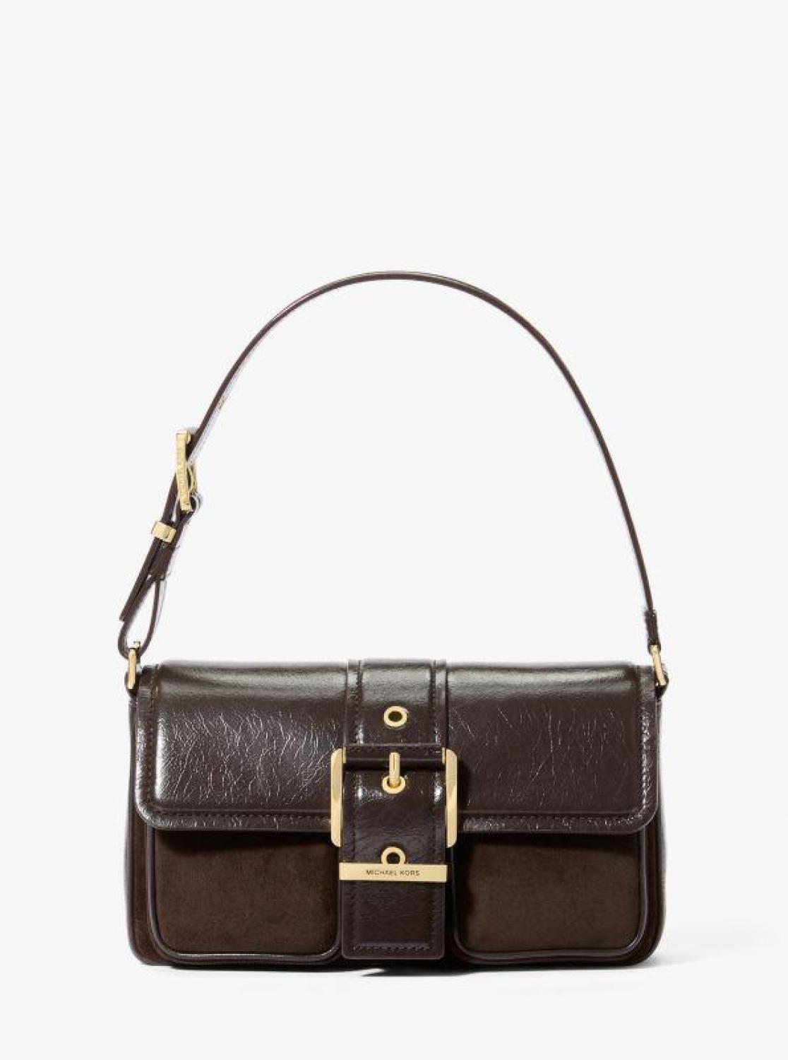 • The modern-yet-classic Colby shoulder bag evokes a cool, New York-inspired sensibility. With its sleek rectangular silhouette and bold buckle accent, this vintage-inspired style is crafted from crackled leather and designed to rest seamlessly under your arm. Match your jewelry to the gold-tone hardware.