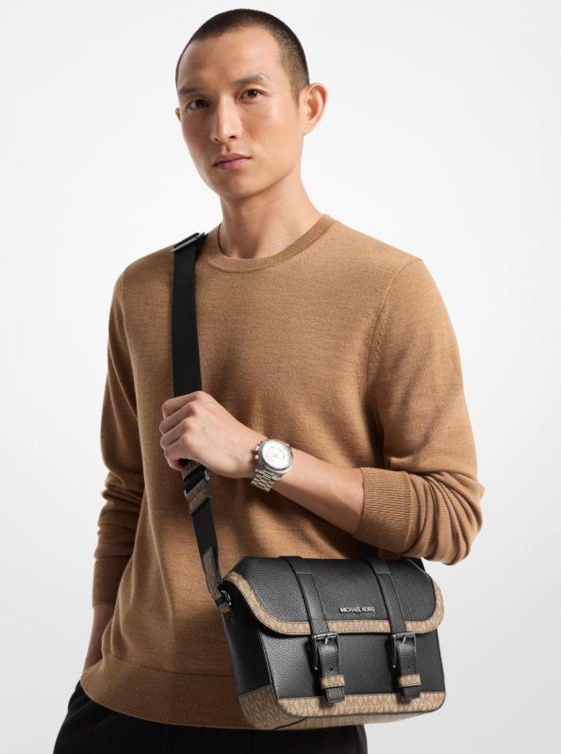 • Our pebbled leather Cooper bag is updated for the season in a utilitarian silhouette with a buckle-fastened front flap. Featuring Signature logo-print canvas trim, it opens to a fully lined interior and padded compartment for a compact tablet. The convenient exterior pocket is sized to safely hold your wallet and keys.