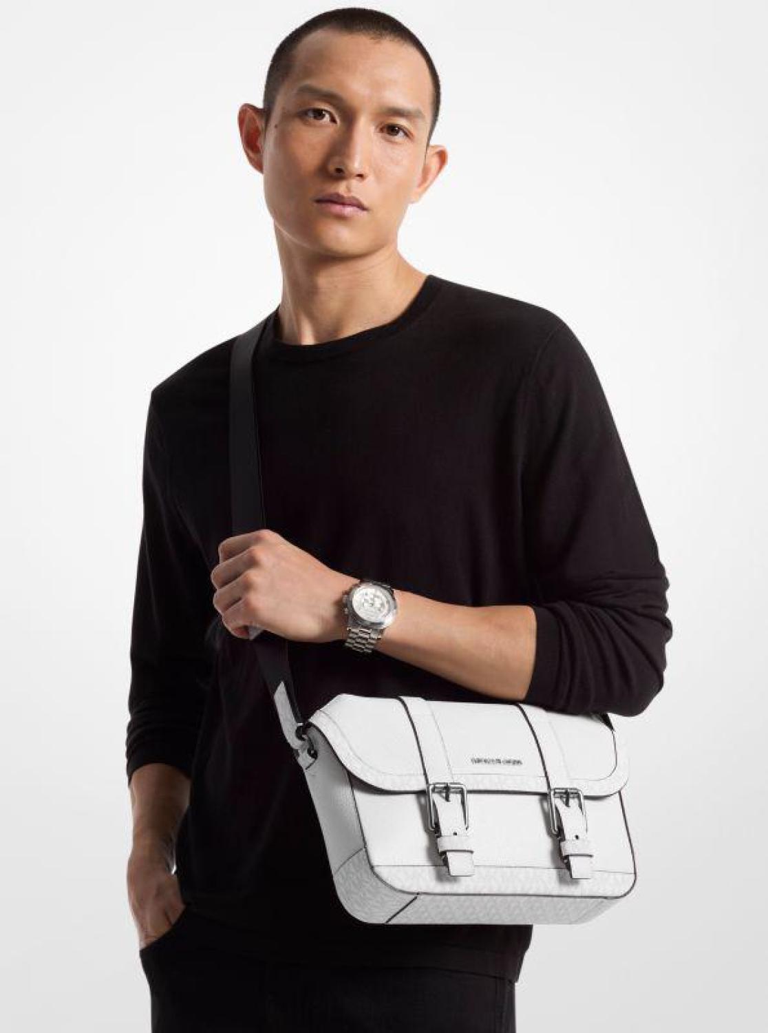 Cooper Travel Pebbled Leather and Signature Logo Flap Messenger Bag