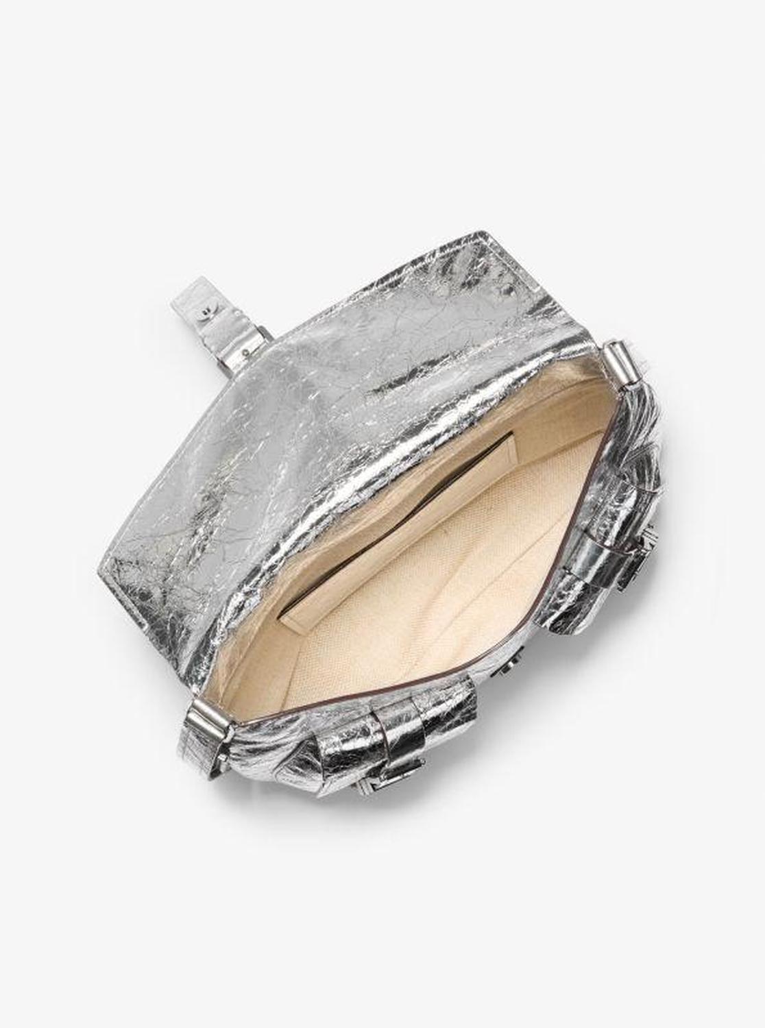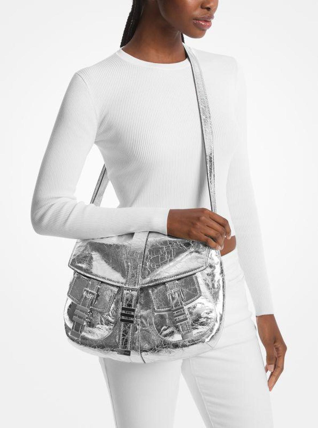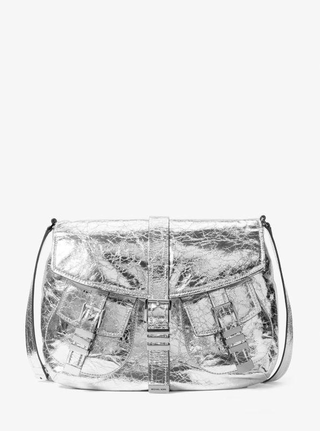 • Our Darrington shoulder bag will make an extra-special addition to your handbag collection. Crafted from metallic crushed leather for a textured look, it features a fold-over design and patch pockets with buckle-fastening details. There’s enough space within the lined interior for your cosmetics bag, wallet, and even a tablet.