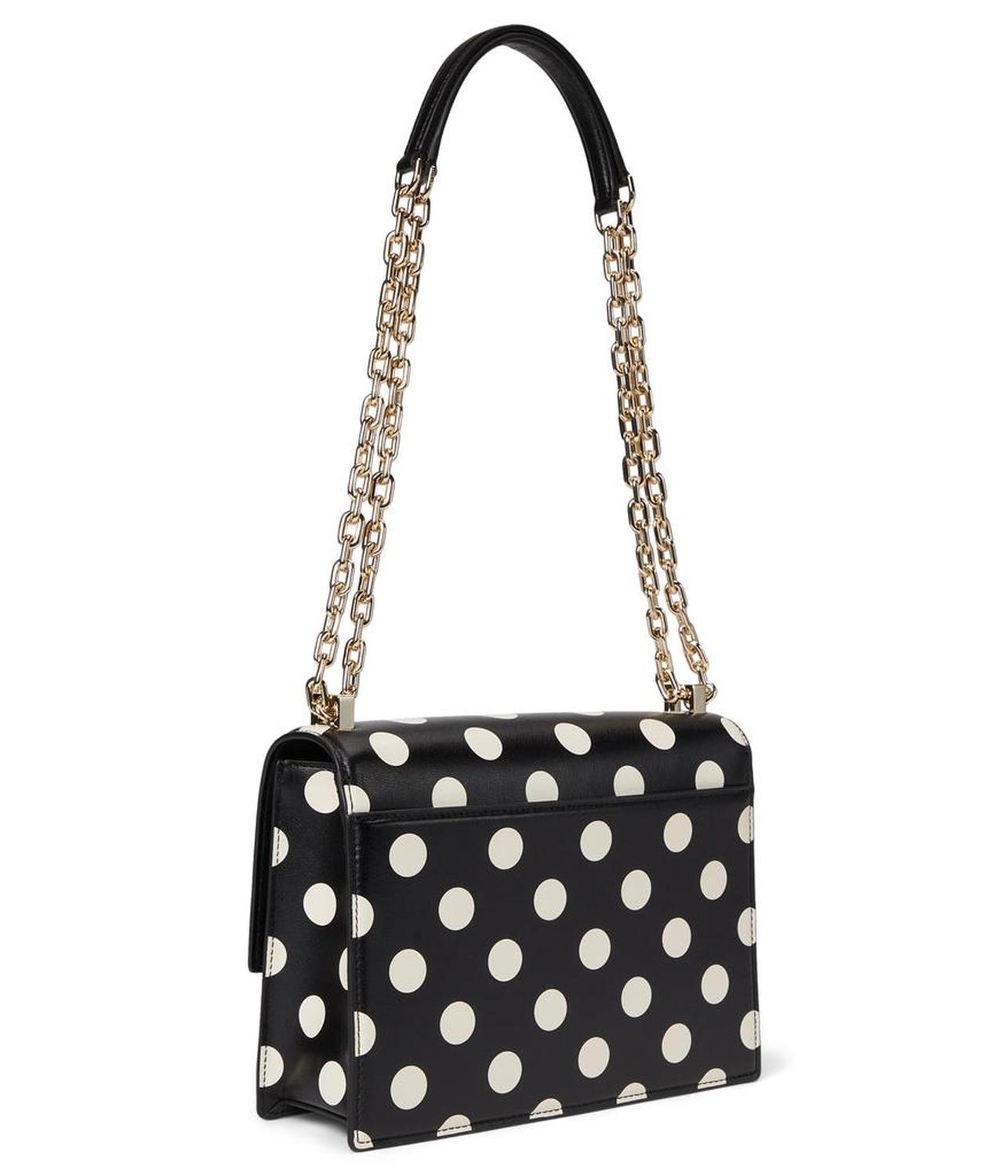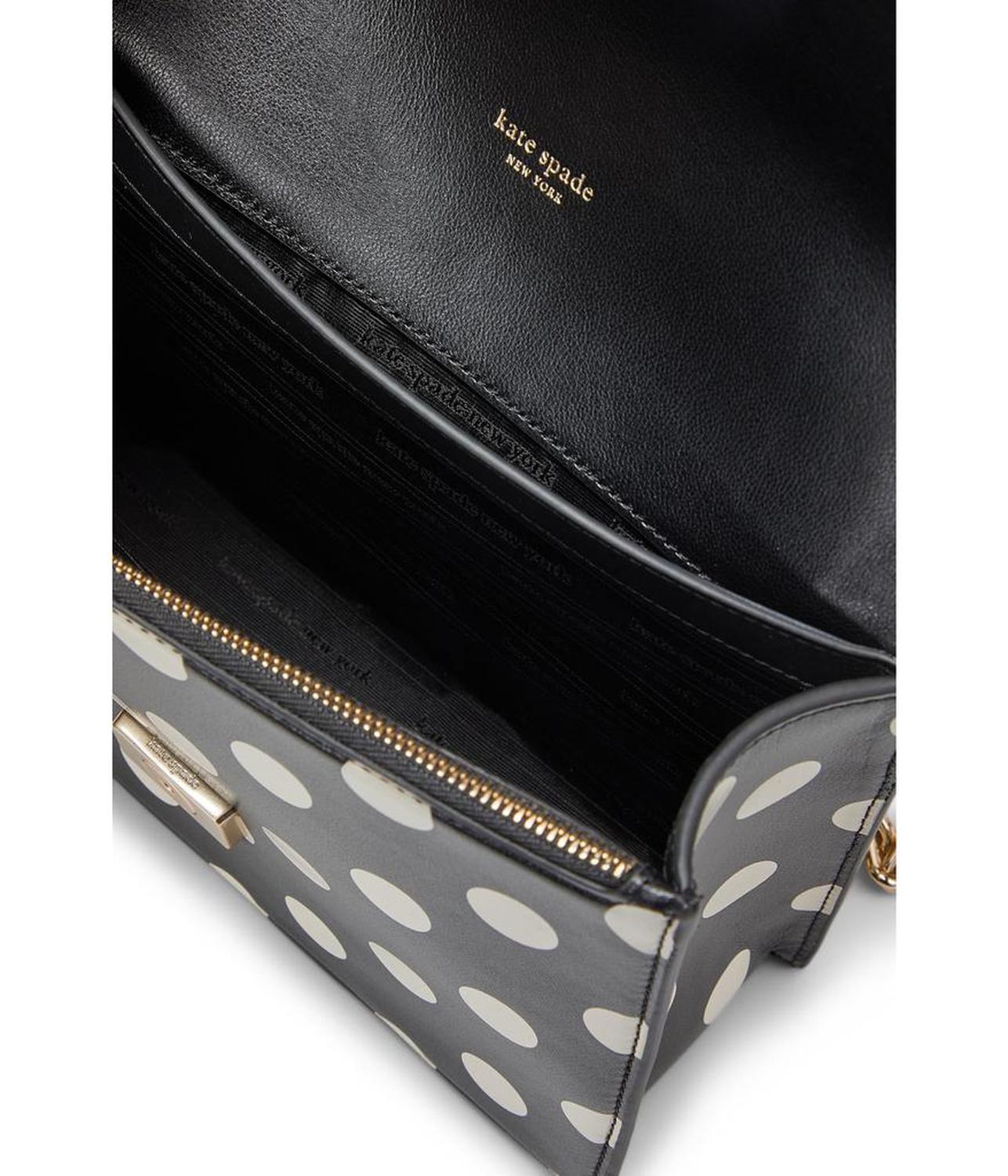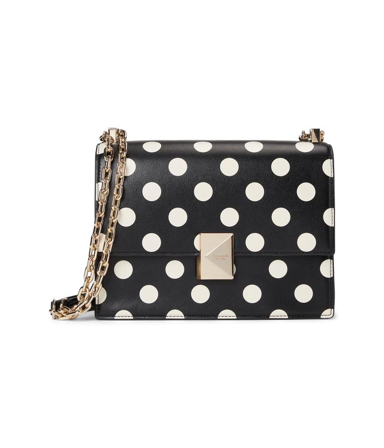 • Stay on-trend carrying the Kate Spade New York® Deco Dot Chain Strap Shoulder Bag. Made from luxurious cow leather and adorned with a whimsical polka dot design allover, this bag is sure to turn heads. The adjustable crossbody shoulder chain offers versatility, while the K hardware at the magnetic snap closure adds a sophisticated touch. Finished with silvertone hardware and stylish PU trim, this bag is a must-have for anyone looking to add a pop of personality to their wardrobe.