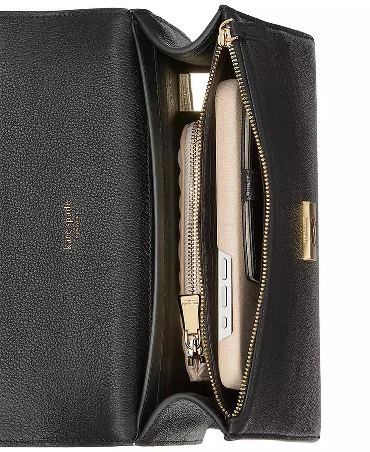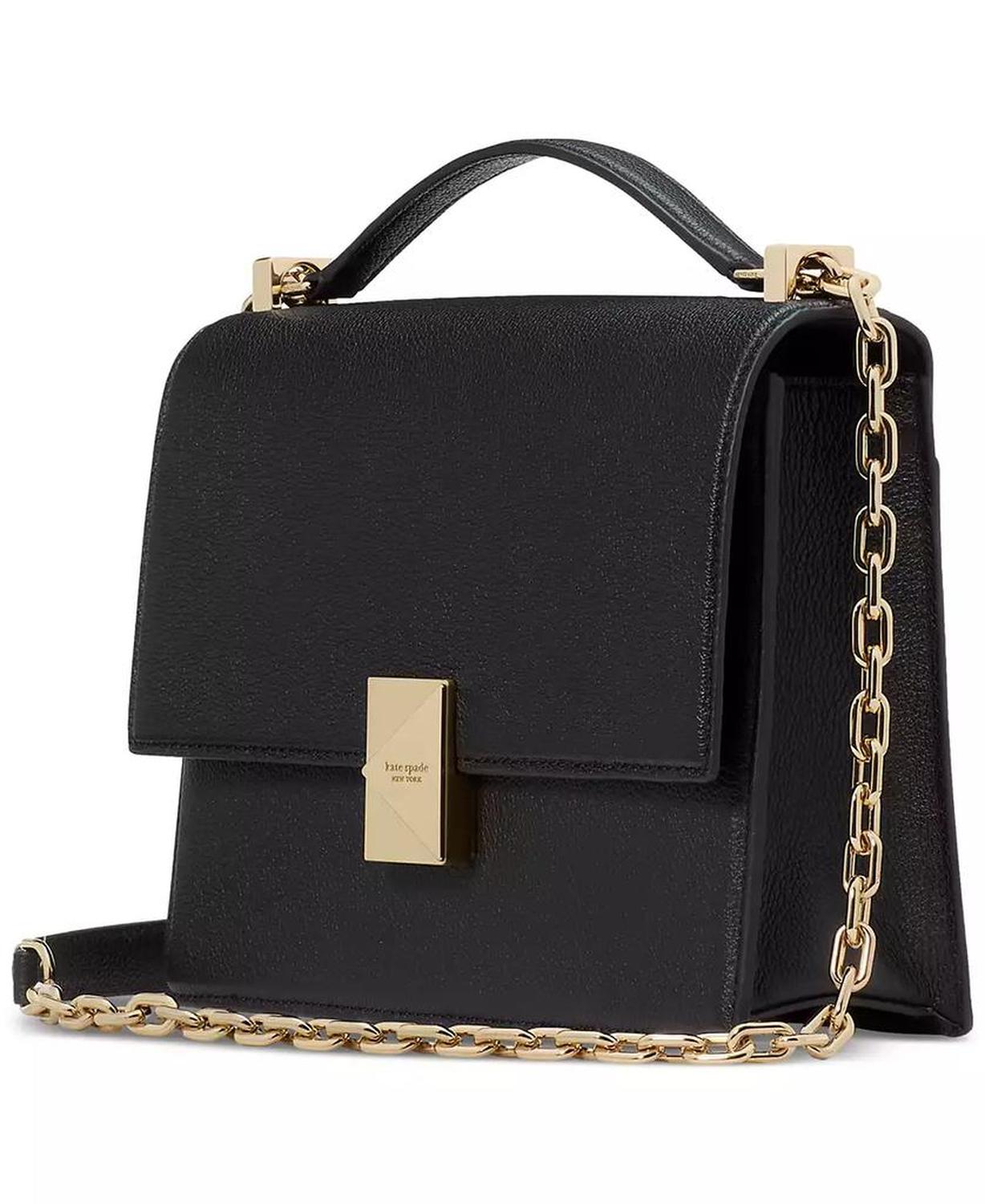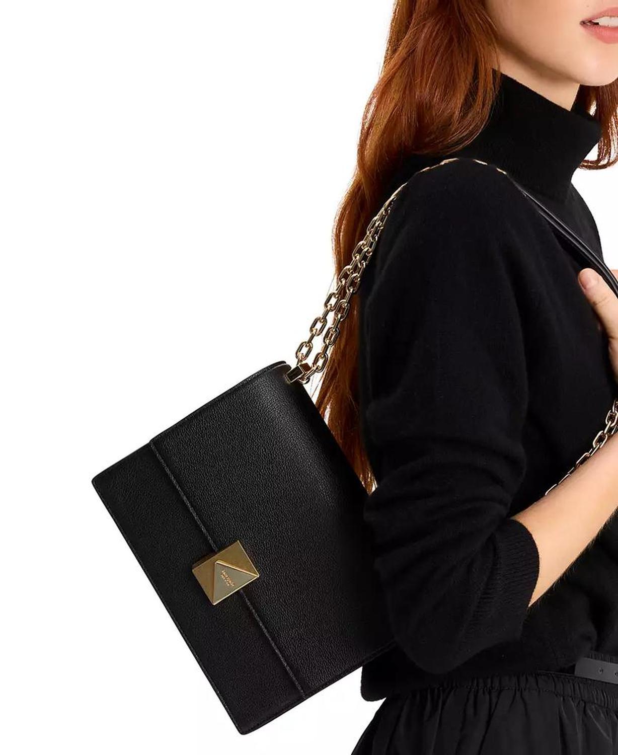 • This sleek shoulder bag by kate spade new york is made of pebbled leather with gold-tone hardware inspired by Art Deco style.