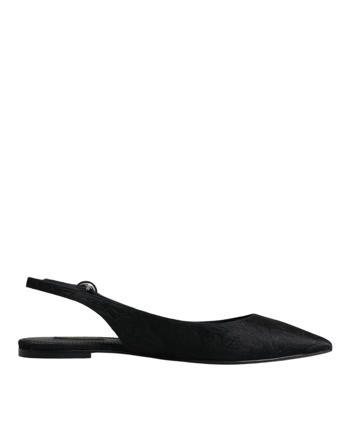 Dolce & Gabbana Black Brocade Flats Sandals Slingback Shoes