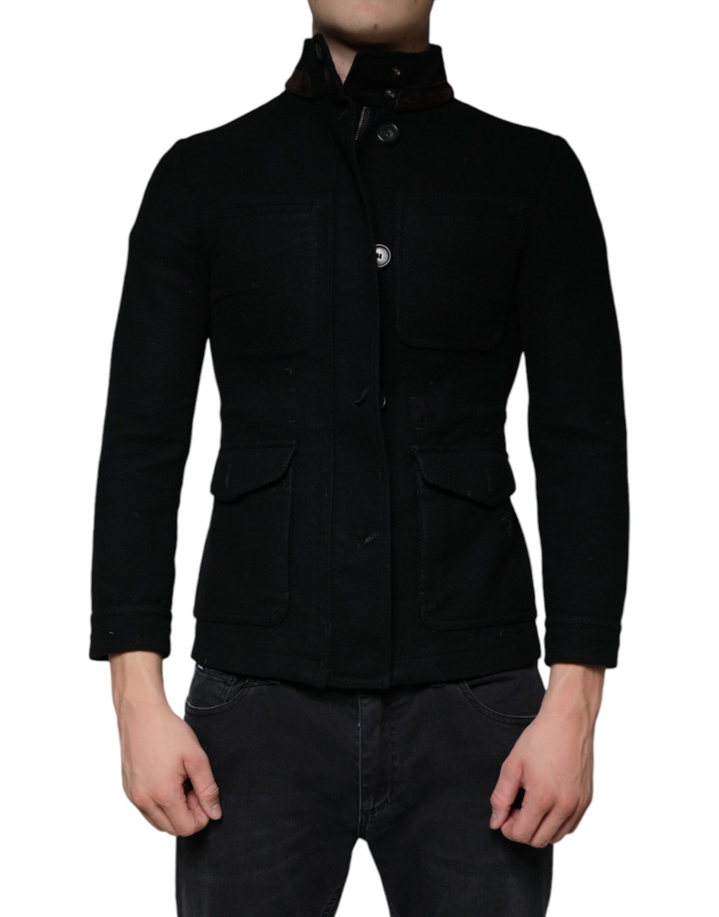 Dolce & Gabbana Black Button Down Cotton Stretch Denim Jacket