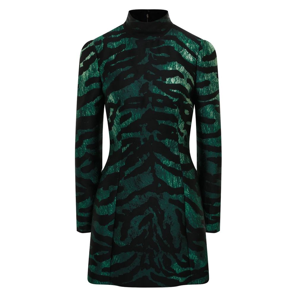 Dolce & Gabbana black and green metallic polyester dress with long sleeves. Back zip fastening.