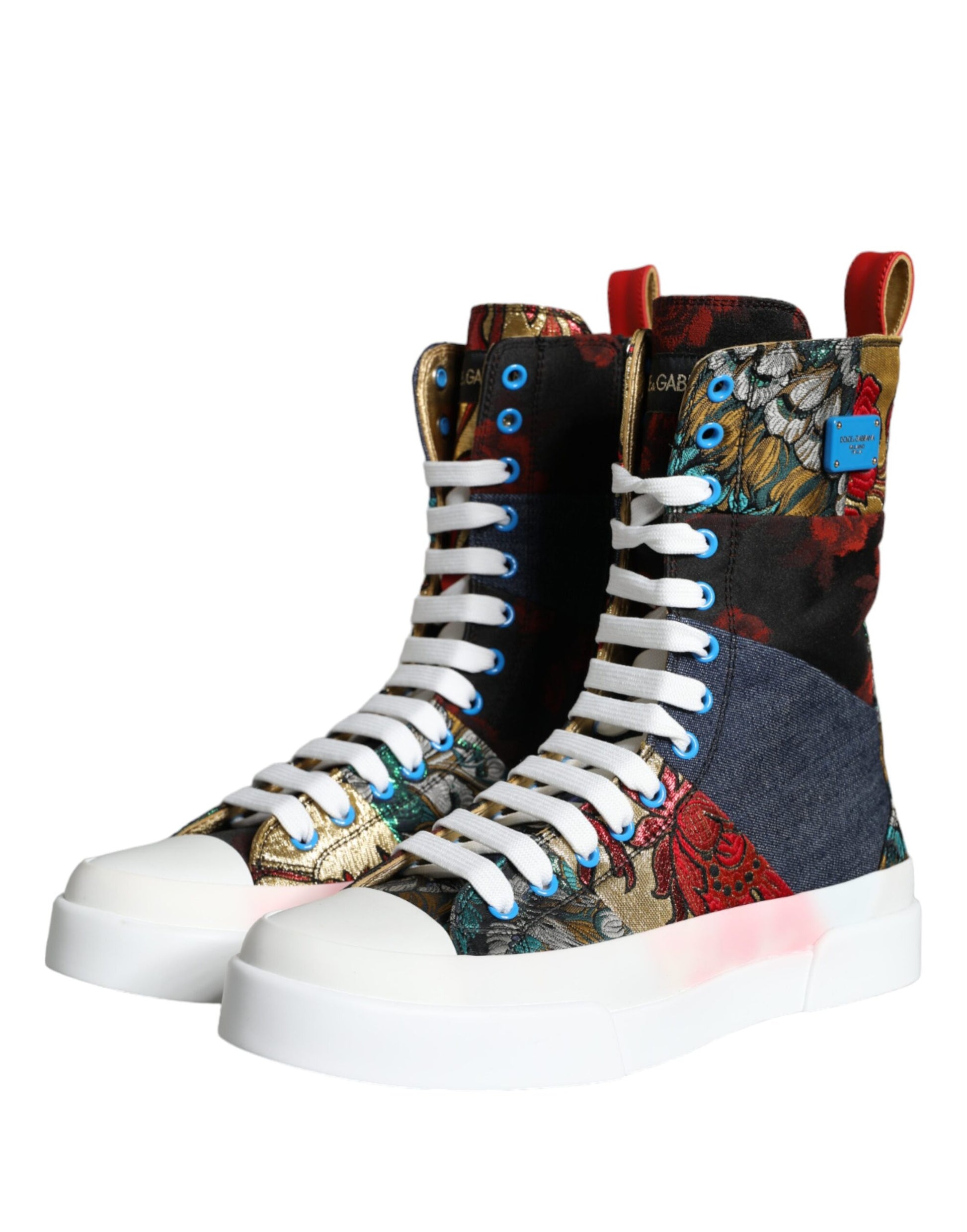 Dolce & Gabbana Multicolor Patchwork Logo High Top Sneakers Shoes