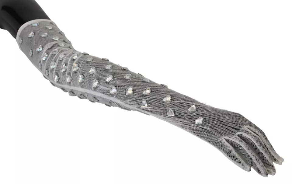 Dolce & Gabbana White Crystal Elbow Length Cotton Tulle Gloves