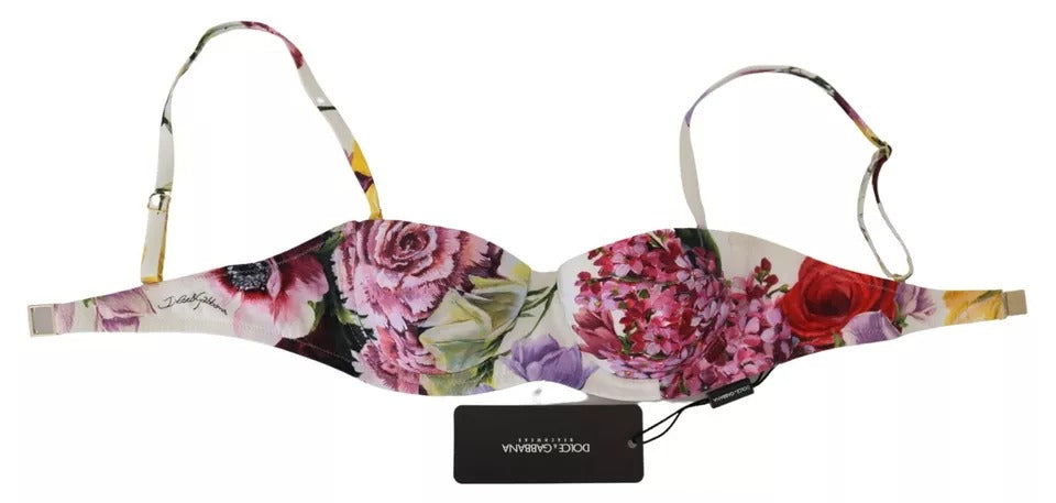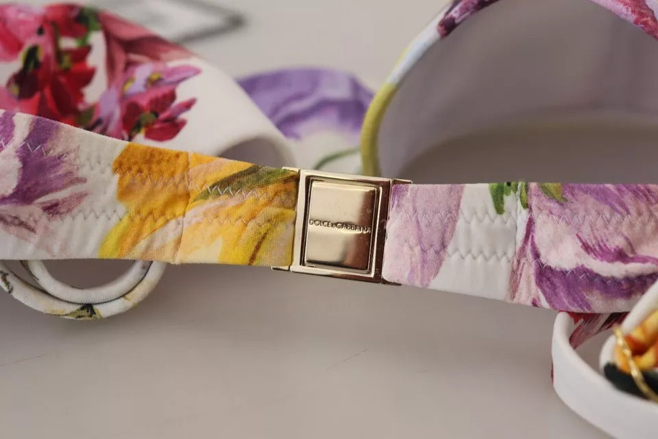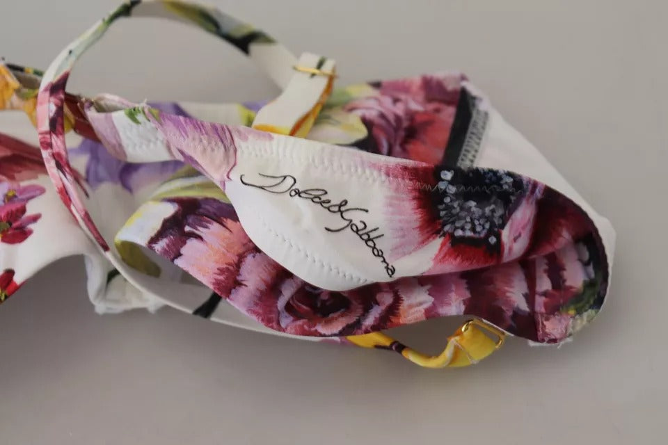 Dolce & Gabbana White Floral Print Beachwear Swimwear Bikini Top