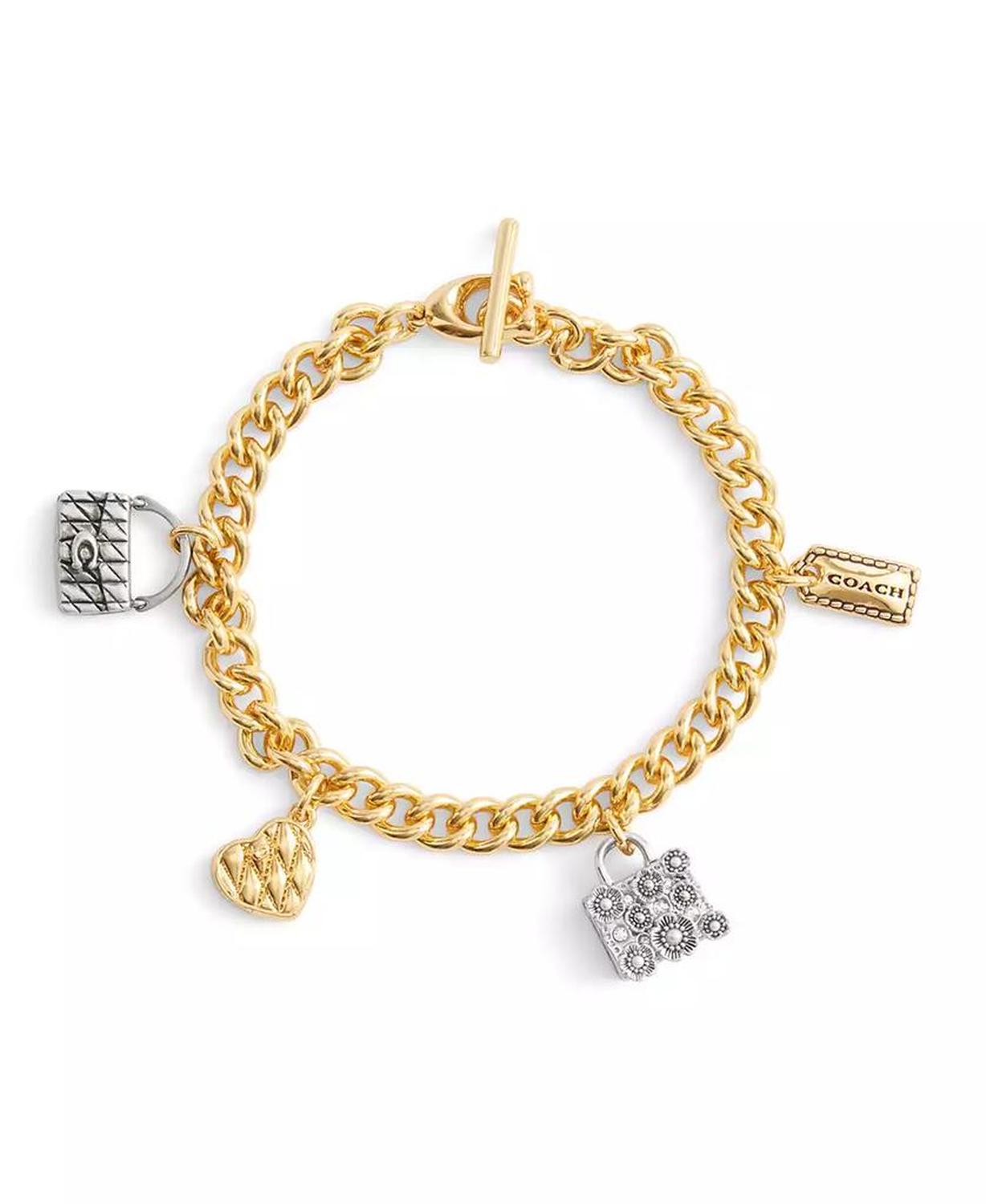 Striking chain bracelet featuring iconic mixed charms including timeless signature handbags and logo stitched perfectly for an everyday statement.