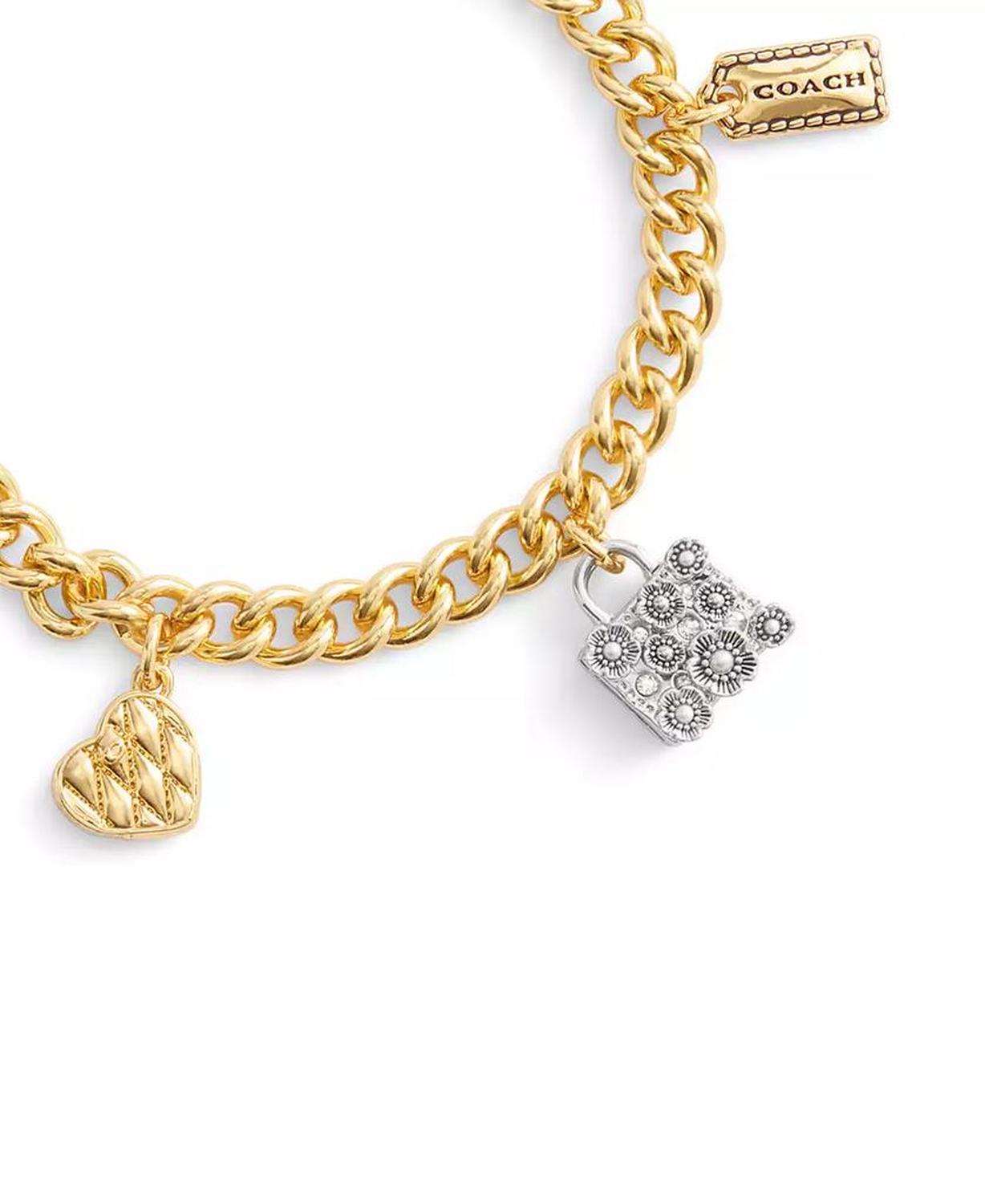• Striking chain bracelet featuring iconic mixed charms including timeless signature handbags and logo stitched perfectly for an everyday statement.