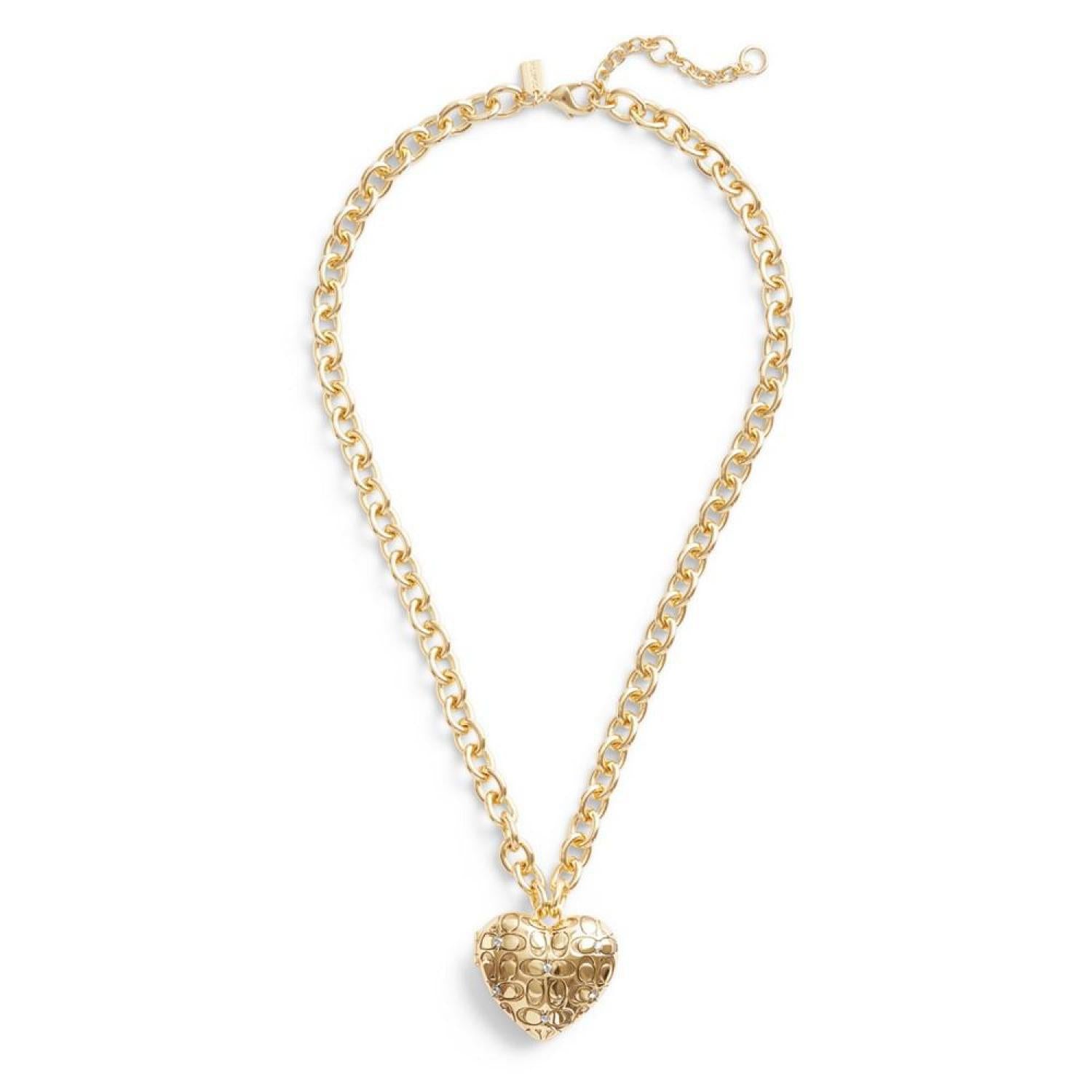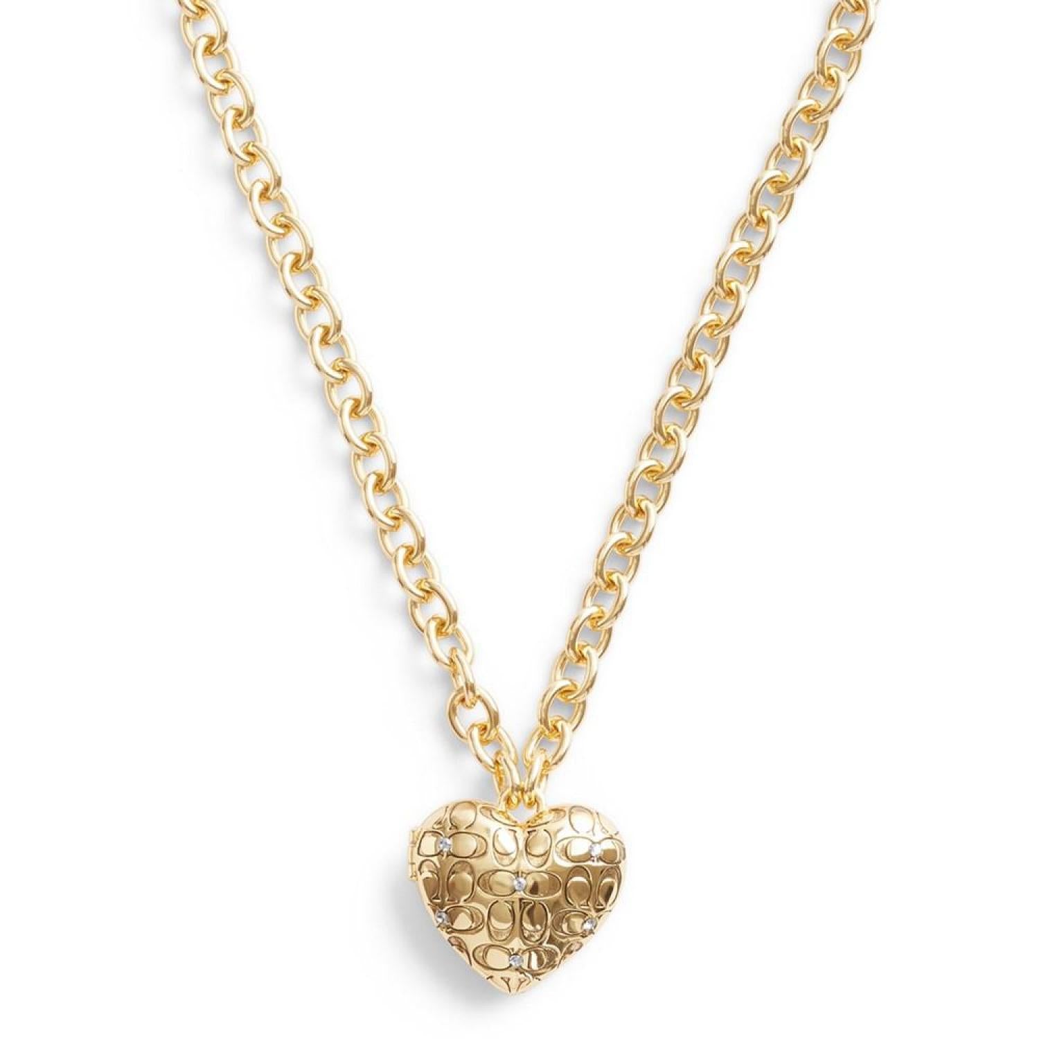 • Striking chain necklace featuring heart locket pendant adorned with quilted signature sculpted c motif and delicate crystal stone accent. Pendant is a functional locket.