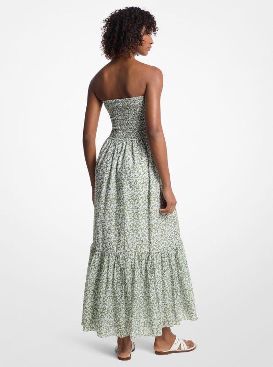 • Flattering and ultra-wearable, this dress is an essential for garden parties and weekend brunches. It’s crafted from lightweight cotton lawn printed with romantic blooms, and features a strapless bodice that’s smocked to balance out the voluminous skirt. Keep it in focus with minimal accessories.