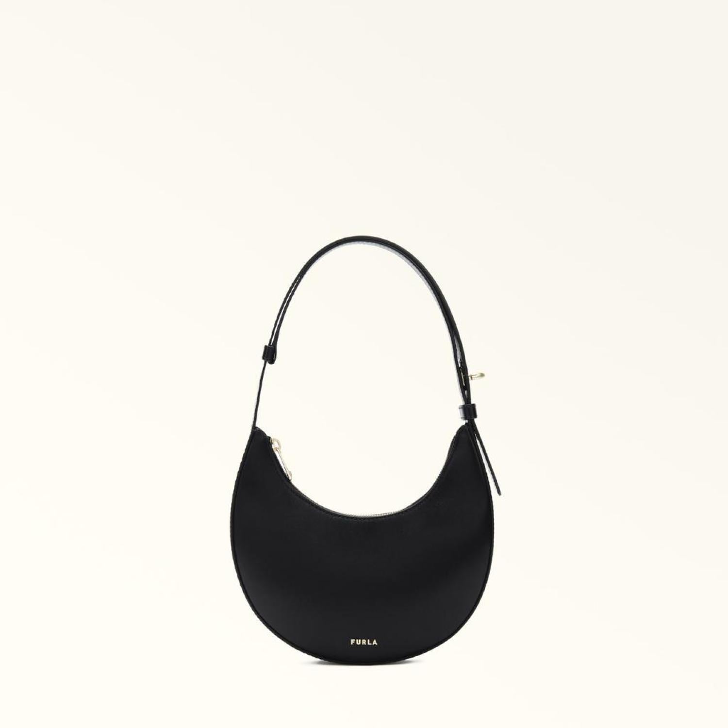 • Mini but mighty, the Furla Delizia is just the right size for all your essentials. A concentration of elegance, the bag's sturdy half-moon structure is made of buttery soft leather. Featuring an adjustable strap, it sits comfortably on your shoulder or in your hand.