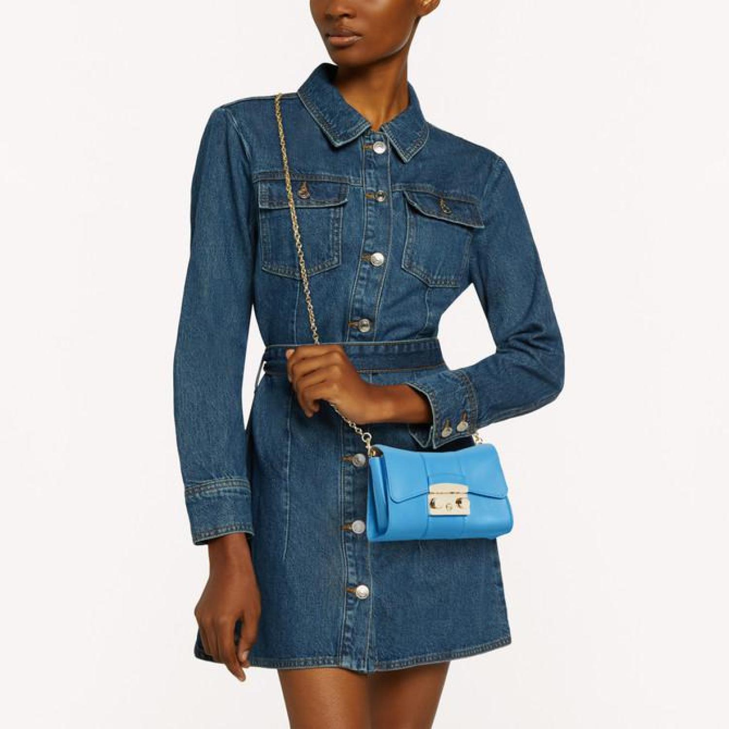Designed for Milan Fashion Week SS23 Metropolis Remix is a limited edition crossbody bag, made of ultra-soft leather in a shape reminiscent of a bow. The bag has the same clasp as the iconic Furla Metropolis, and its removable chain strap allows you to wear it as a shoulder bag, a crossbody bag or as a pouch. - inner pockets Dimensions 7.09 x 4.92 x 3.15 (w x h x d) composition 100% Leather Plating Gold Height 4.92 in product code WB00930_BX1709_1007_1998S