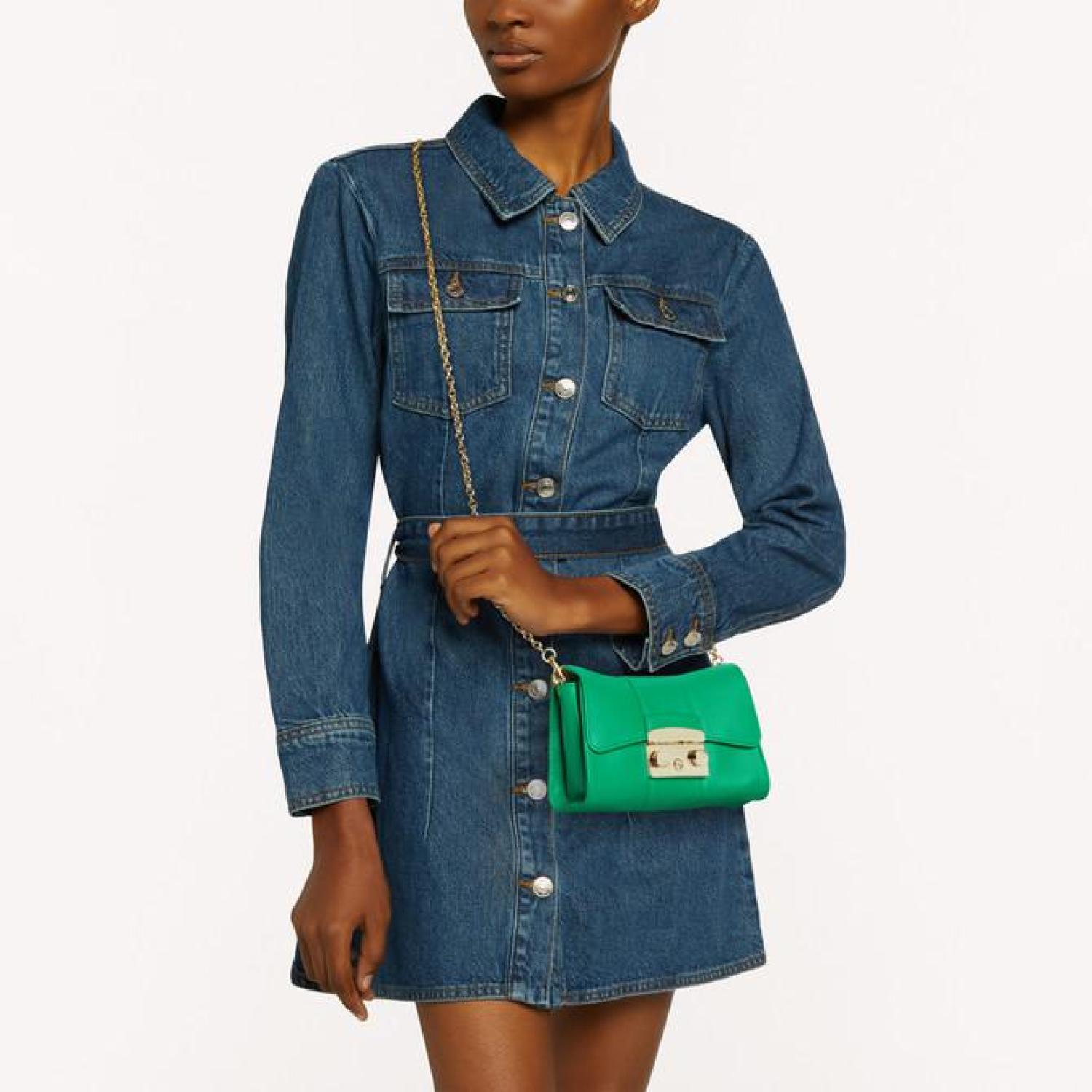 Metropolis Remix is a limited edition crossbody bag, made of ultra-soft leather in a shape reminiscent of a bow. The bag has the same clasp as the iconic Furla Metropolis, and its removable chain strap allows you to wear it as a shoulder bag, a crossbody bag or as a pouch.
