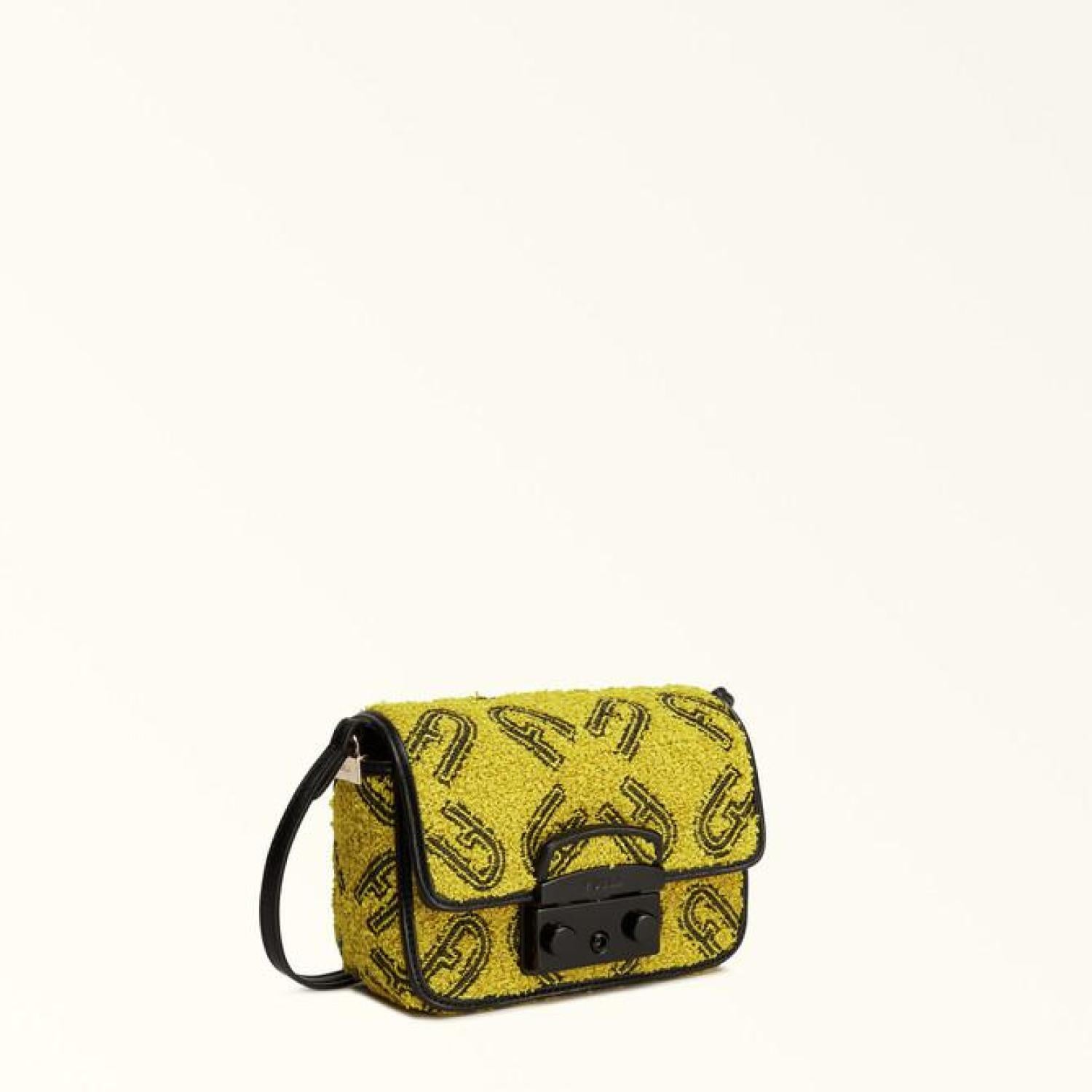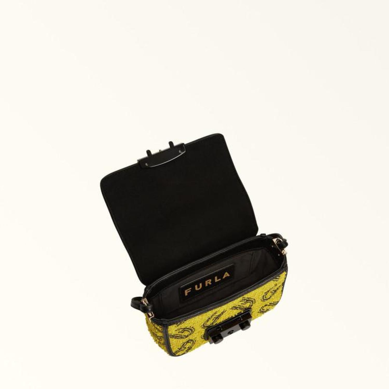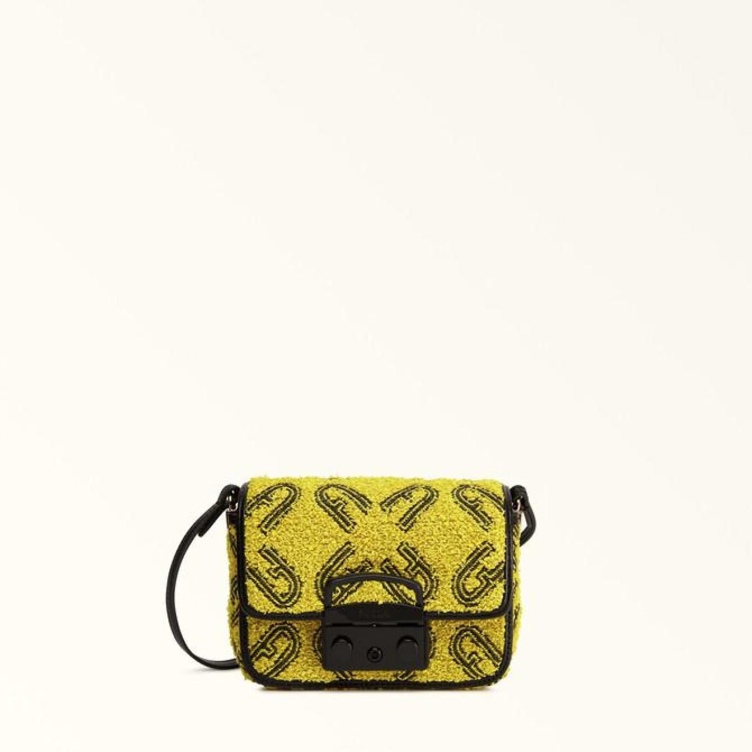 • Furla Metropolis is a mini crossbody bag made of raffia fabric with a multiple arch design. Featuring an adjustable black leather strap, it is the perfect accessory for completing your look during the summer months.