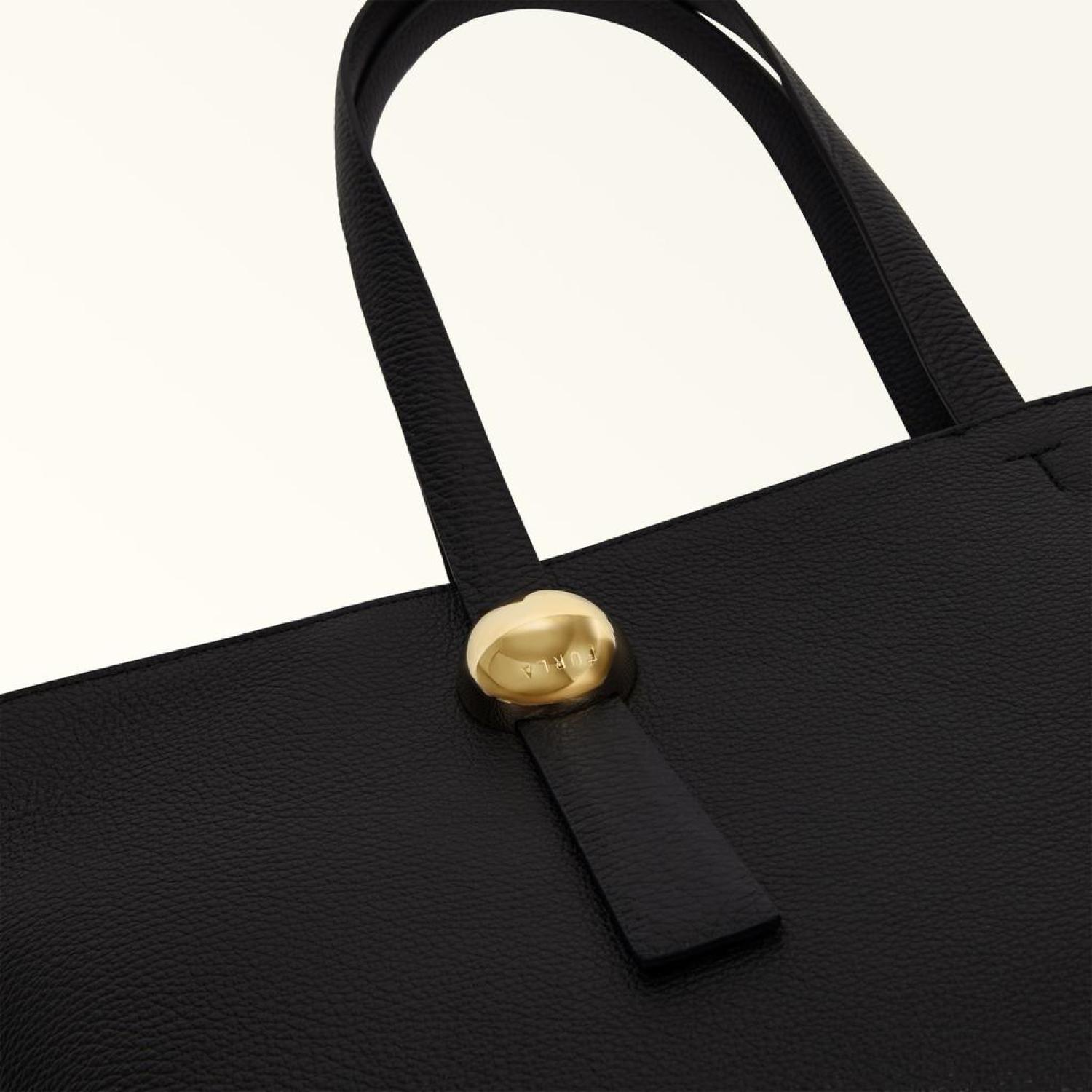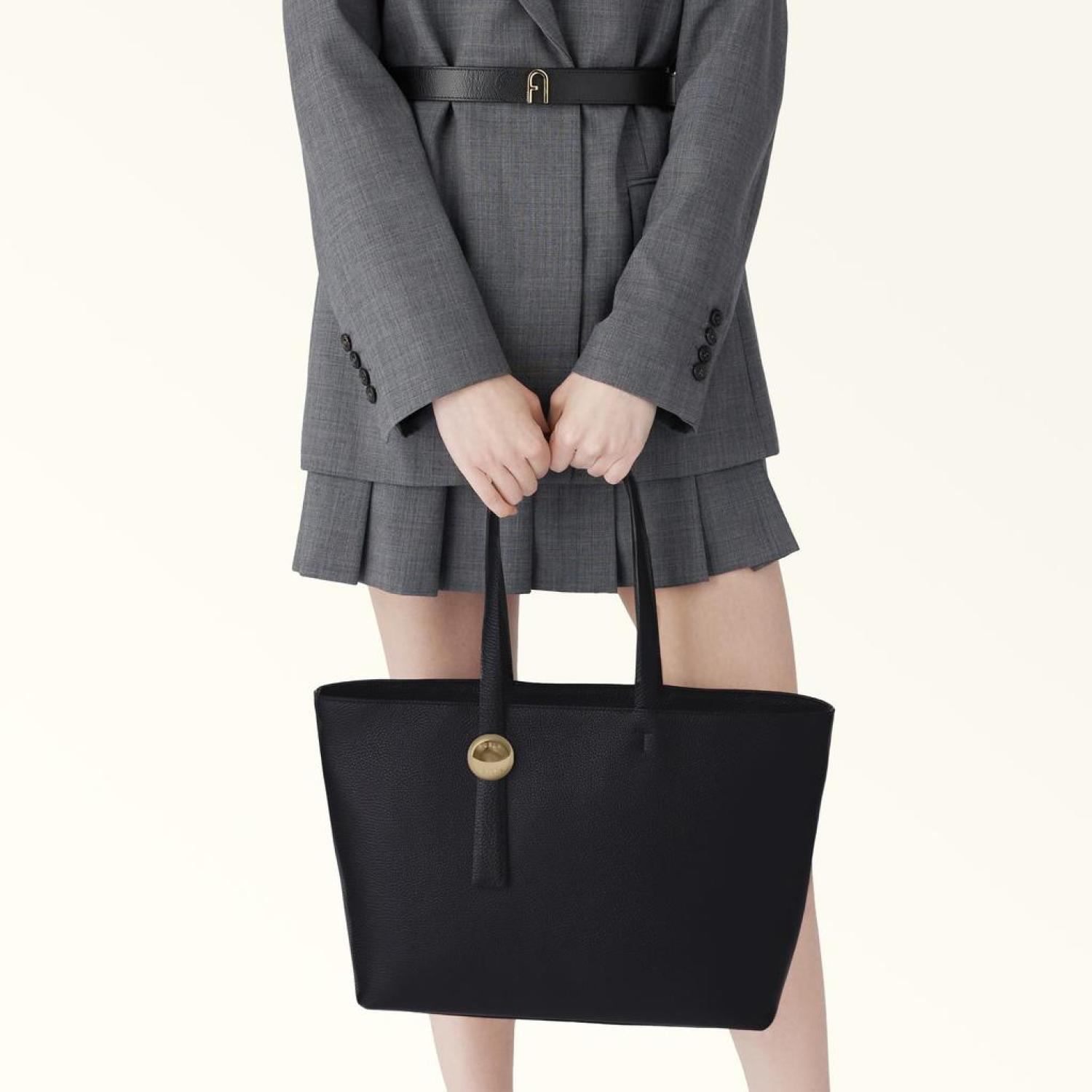 Designed to keep up with your day-to-day, the spacious Furla Sfera tote holds everything you might need. Made of soft textured leather, its long matching handles sit comfortably on the shoulder or in the hand. Furla's new galvanised spherical hardware, inspired by the brand's iconic hallmark, completes the bag with a flawless flourish. - Two open inside pockets - Inside zip pocket - Zip closure