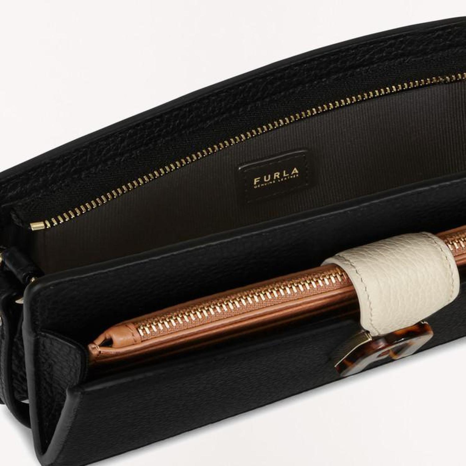 - Furla Sofia is a crossbody bag made of grained calfskin leather. The bag features a practical leather tab fastening to insert into the metal Arch logo on the front. - Extractable credit card holder - Central zip pocket - Adjustable and removable leather strap with 55 cm drop length - Inner pocket with three credit card slots Dimensions 7.91 x 4.76 x 0.83 (w x h x d) composition 100% Leather Plating Tortoise+Light Gold Height 4.76 in product code EBM8PRS_HSC000_9008_0255S