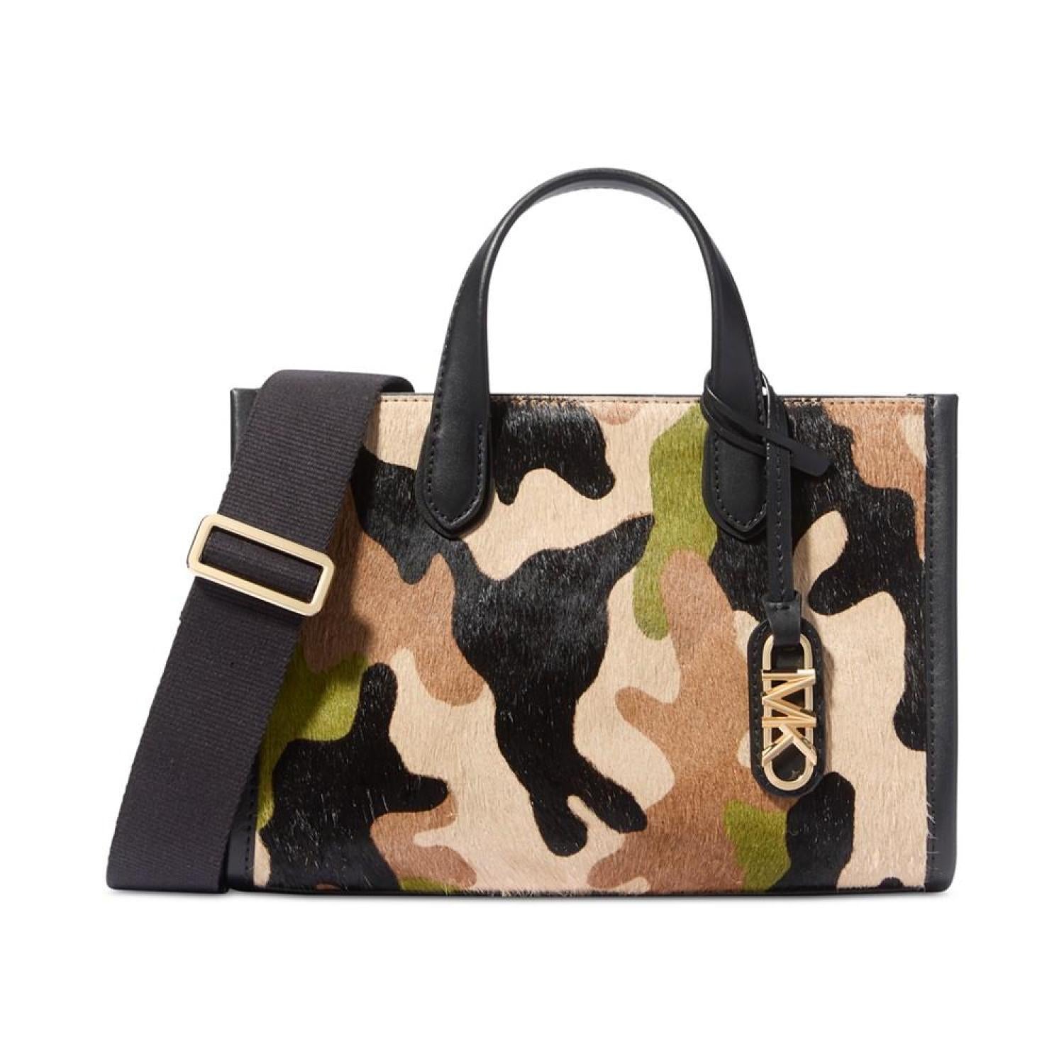 Make a statement with this camo calf hair crossbody by MICHAEL Michael Kors, featuring a removable strap and shiny gold-tone hardware accents and logo charm.