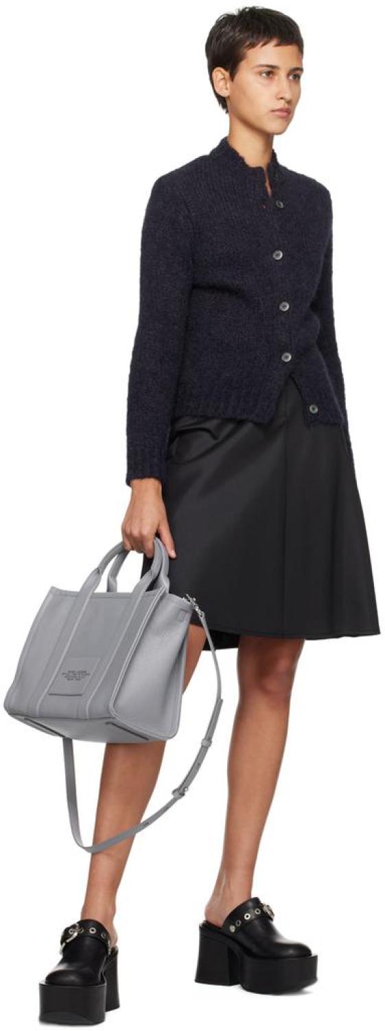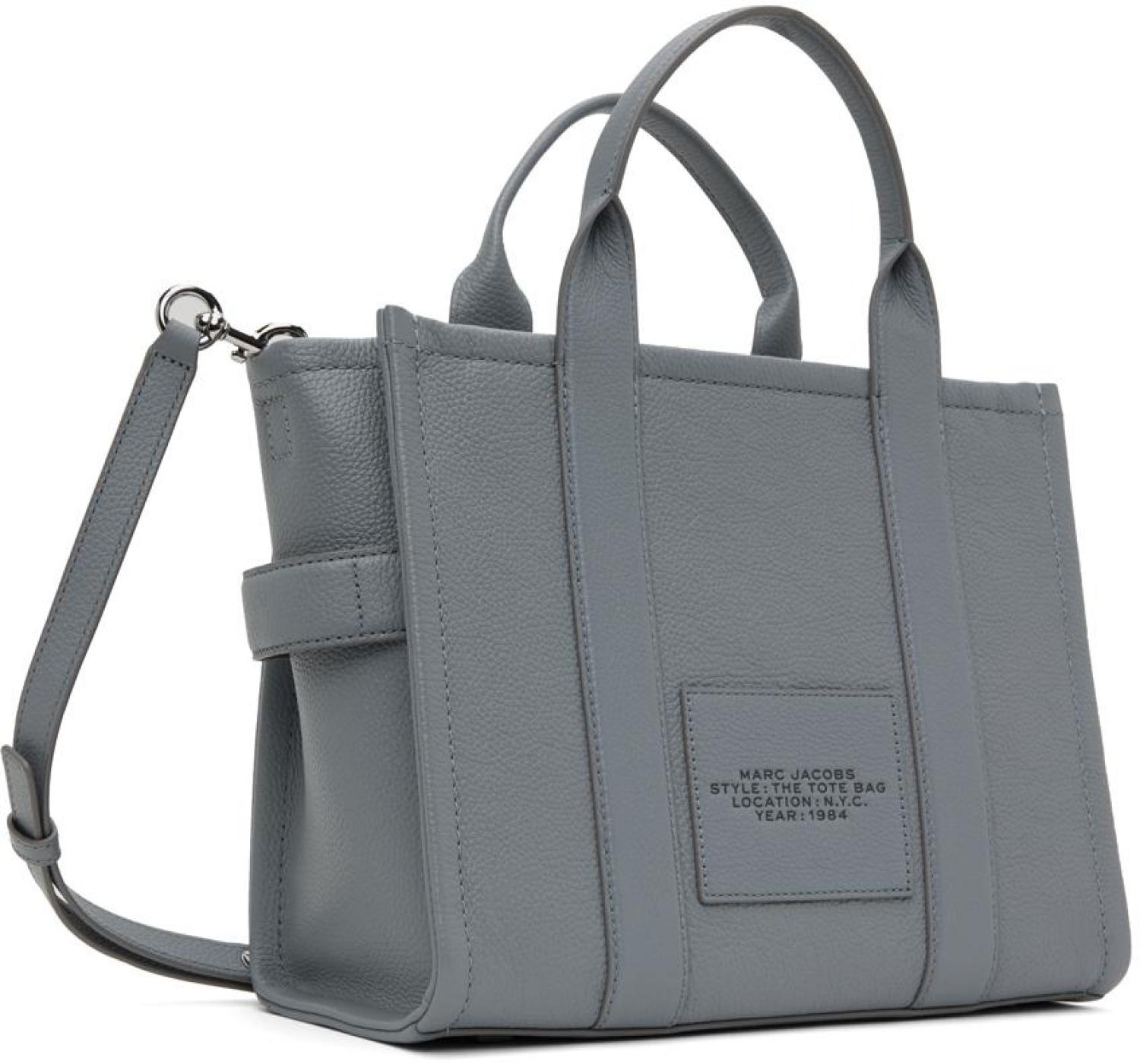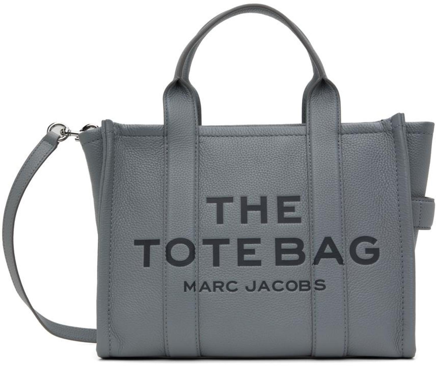 Marc Jacobs Gray 'The Leather Medium Tote Bag' Tote Grained leather tote in gray. · Twin rolled carry handles · Adjustable and detachable crossbody strap · Logo embossed at face · Carry handle at side · Logo patch at back face · Leather pads at base · Zip closure · Patch and zip pockets at interior · Twill lining · H9.75" x W13" x D6" Supplier color: Wolf grey Leather. Made in Viet Nam. 241190F049069