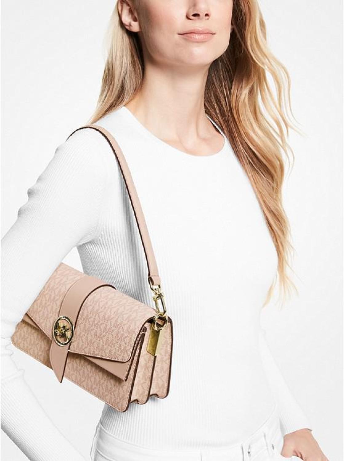 • Consider our Greenwich shoulder bag the quickest way to make a chic statement. The combination of Signature-print canvas and polished hardware feel at once edgy and modern, while interchangeable shoulder straps complete the eye-catching style with added versatility. We think it’s the ultimate finishing touch to create a polished look.