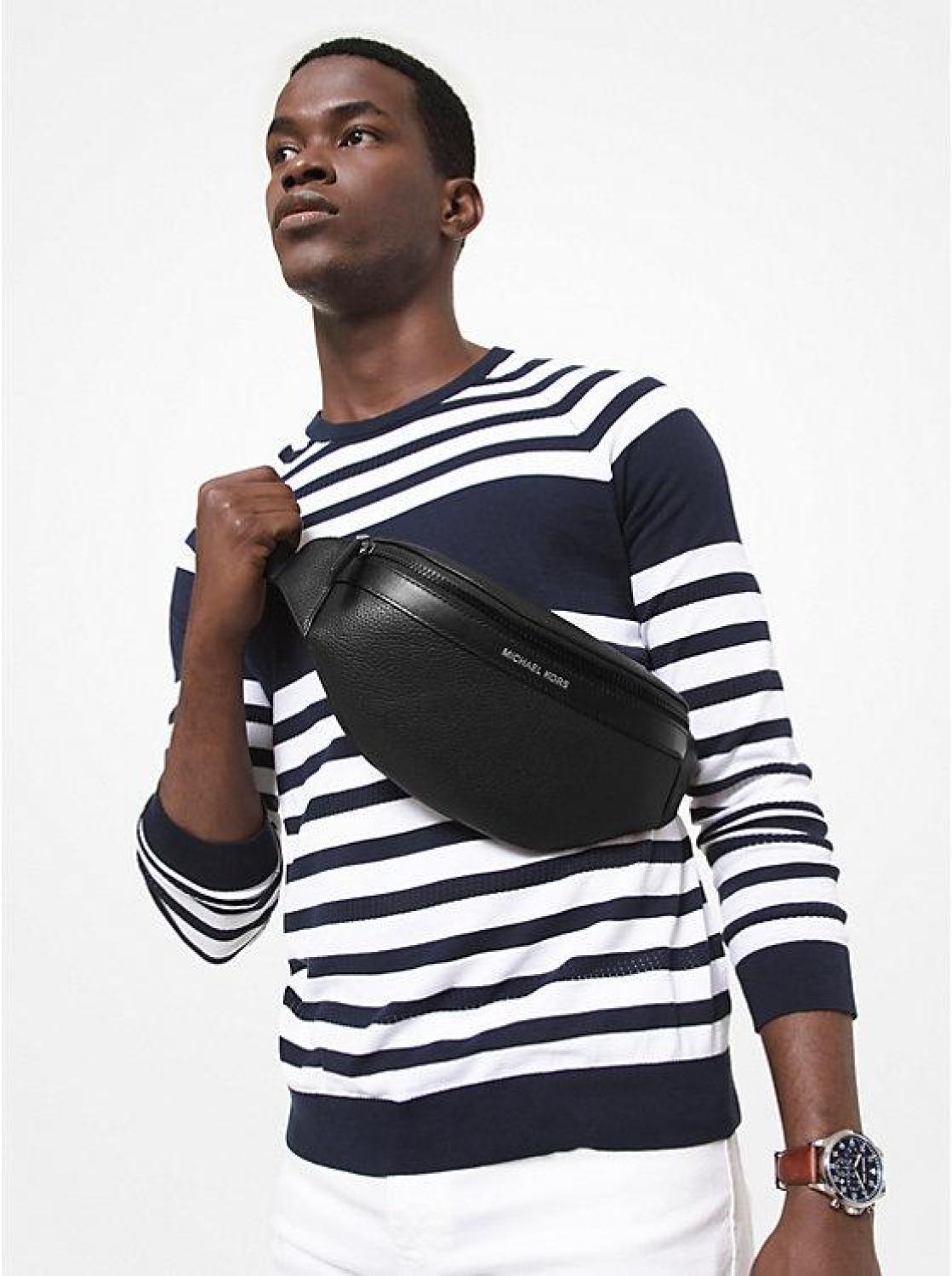 • Go hands free with the Greyson, a sling pack crafted from pebbled leather. It features a front and back pocket for storing small items, while an adjustable buckle strap ensures comfortable wear. Sport it around your waist or over the shoulder.