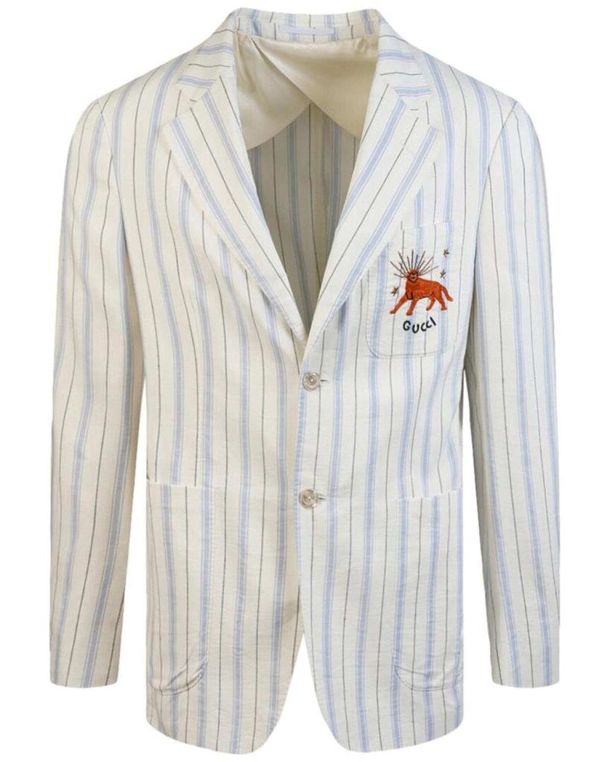 • Introducing the Gucci Fo Palma Silk & Linen-Blend Jacket in Light Blue, the ultimate addition to any gentleman's wardrobe. Crafted from the finest materials, this jacket boasts a 51% silk and 49% linen blend for a luxurious feel and comfortable fit. The design details include button closures and impeccable attention to detail that is synonymous with the Gucci brand. Made in Italy to the highest standards, this jacket is dry clean only to ensure long-lasting wear for years to come. Our products are 100% genuine, and although we may purchase from trusted independent suppliers, we assure you that every product sold on our site is authentic. With Gucci's eclectic and coveted style, this Fo Palma Silk & Linen-Blend Jacket is the epitome of Italian luxury redefined. Upgrade your wardrobe today with this classic sport coat that belongs in every man's closet.