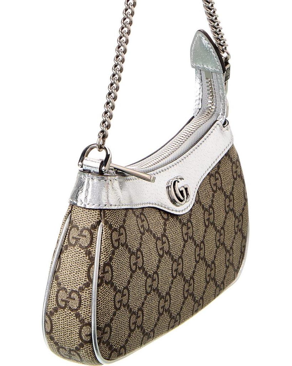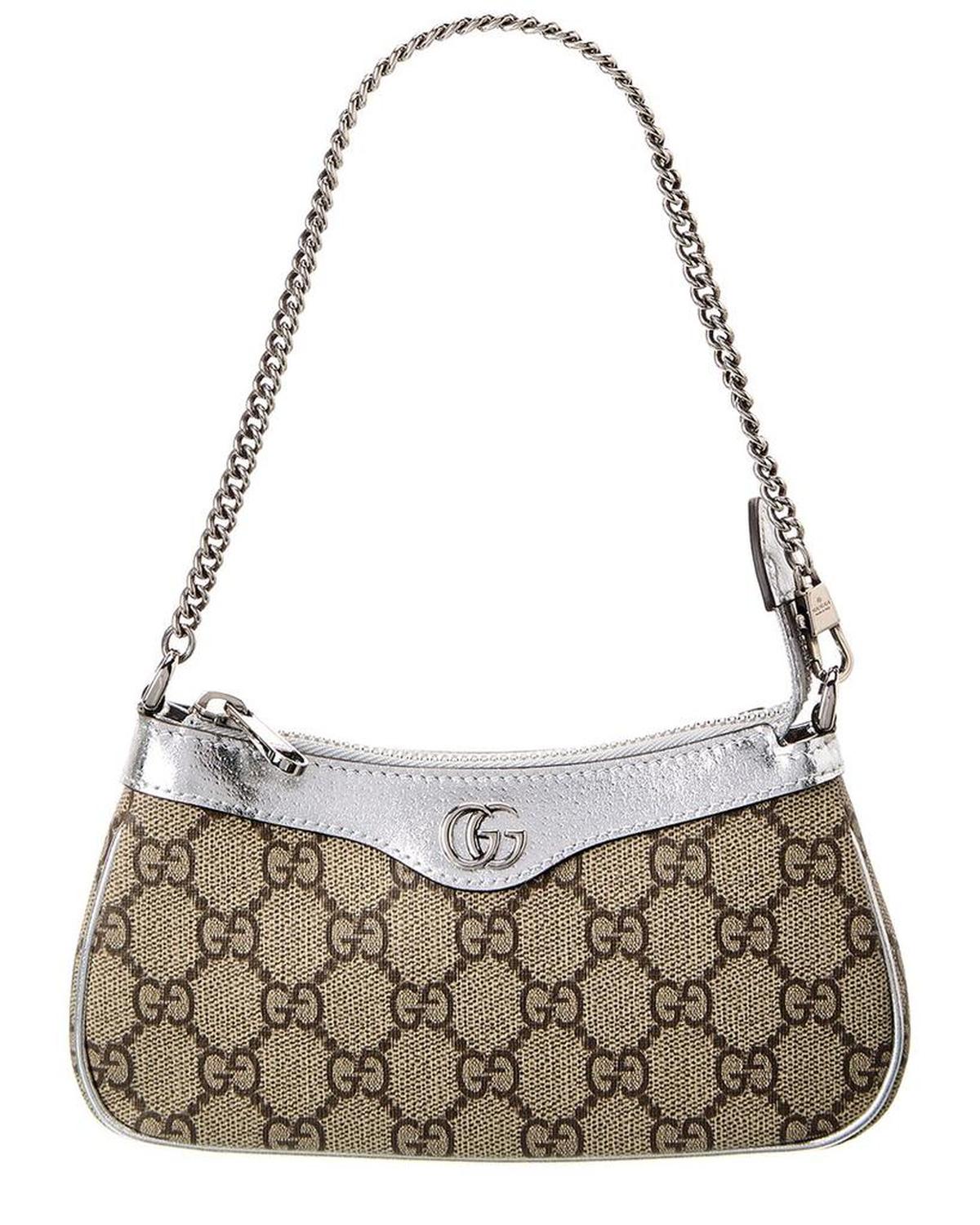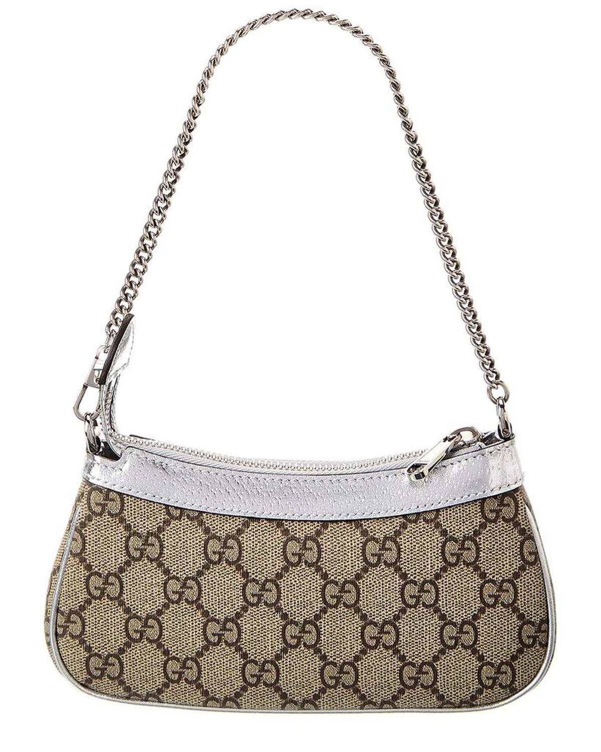 Introducing the Gucci Ophidia Mini GG Supreme Canvas & Leather Shoulder Bag, a true epitome of Italian luxury redefined. Crafted with utmost precision and attention to detail, this exquisite shoulder bag is designed to cater to the discerning tastes of sophisticated women.Made in Italy, this shoulder bag features GG Supreme canvas and silver leather, exuding an air of elegance and refinement. The dark silver hardware beautifully complements the interlocking G logo accent, showcasing the iconic Gucci branding.Step into the world of opulence with its interior design, featuring a luxurious canvas lining along with an interior pocket. The perfect blend of functionality and style, this bag allows you to comfortably carry your essentials while keeping them organized.With dimensions measuring 7.5 inches wide, 4 inches high, and 1.2 inches deep, this mini shoulder bag strikes the perfect balance between compactness and spaciousness. The removable shoulder strap, with a drop of 7 inches, offers versatile styling options to suit your preference.Securing your belongings with a zipper closure, this bag ensures their safety while adding a touch of sophistication to your ensemble. Please note that all measurements were taken by hand, and slight variations may occur, showcasing the unique craftsmanship of each piece.Rest assured that our products are 100% genuine. While some merchandise is purchased from trusted independent suppliers, not directly from the brand owner, we guarantee the authenticity of every product sold on our site. Indulge in the unparalleled luxury of Gucci with the Ophidia Mini GG Supreme Canvas & Leather Shoulder Bag. It's time to elevate your style and embrace the eclectic and coveted world of Italian luxury.