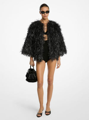There is no easier or more luxurious way to make a sartorial statement than to slip on this chubby jacket. Hand-embroidered fringe lends a textural touch, while drop shoulders and wide sleeves round out the eye-catching design. Wear it to parties over swim separates for the ultimate expression of resort glamour. Made in Italy.