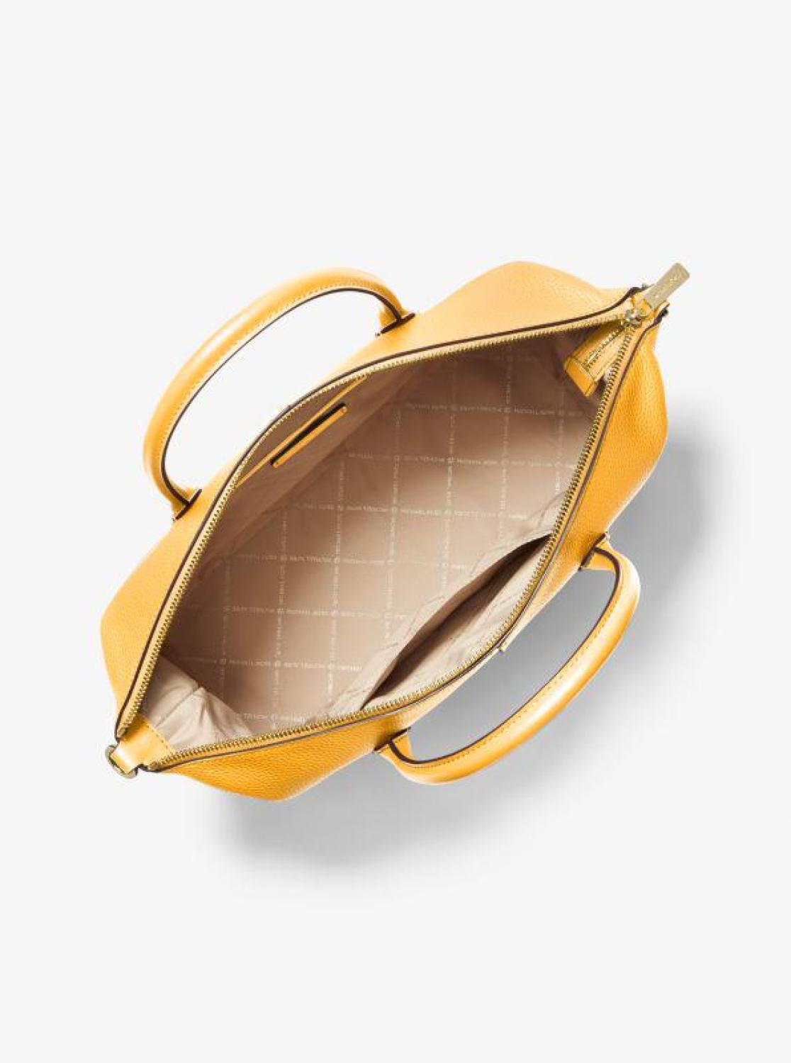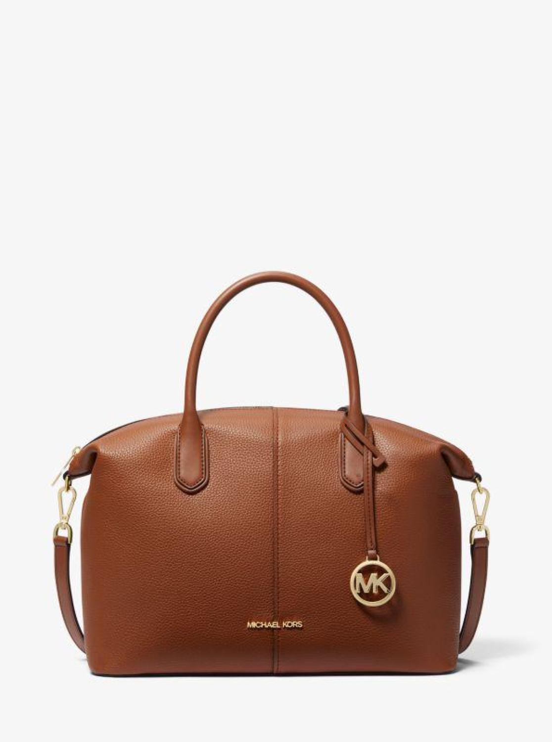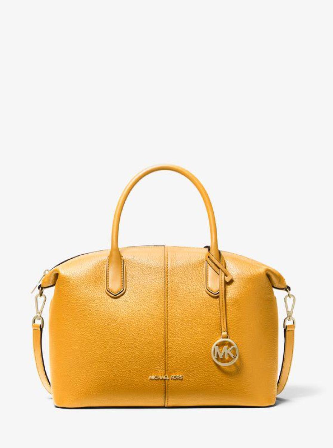 • From work days to getaways, the Hyde satchel ensures you’re ready for whatever comes your way. This pebbled leather bag boasts a spacious logo-lined interior that will easily fit your daily essentials, plus a water bottle or change of flats. Carry yours by the structured top handles or the removable shoulder strap.