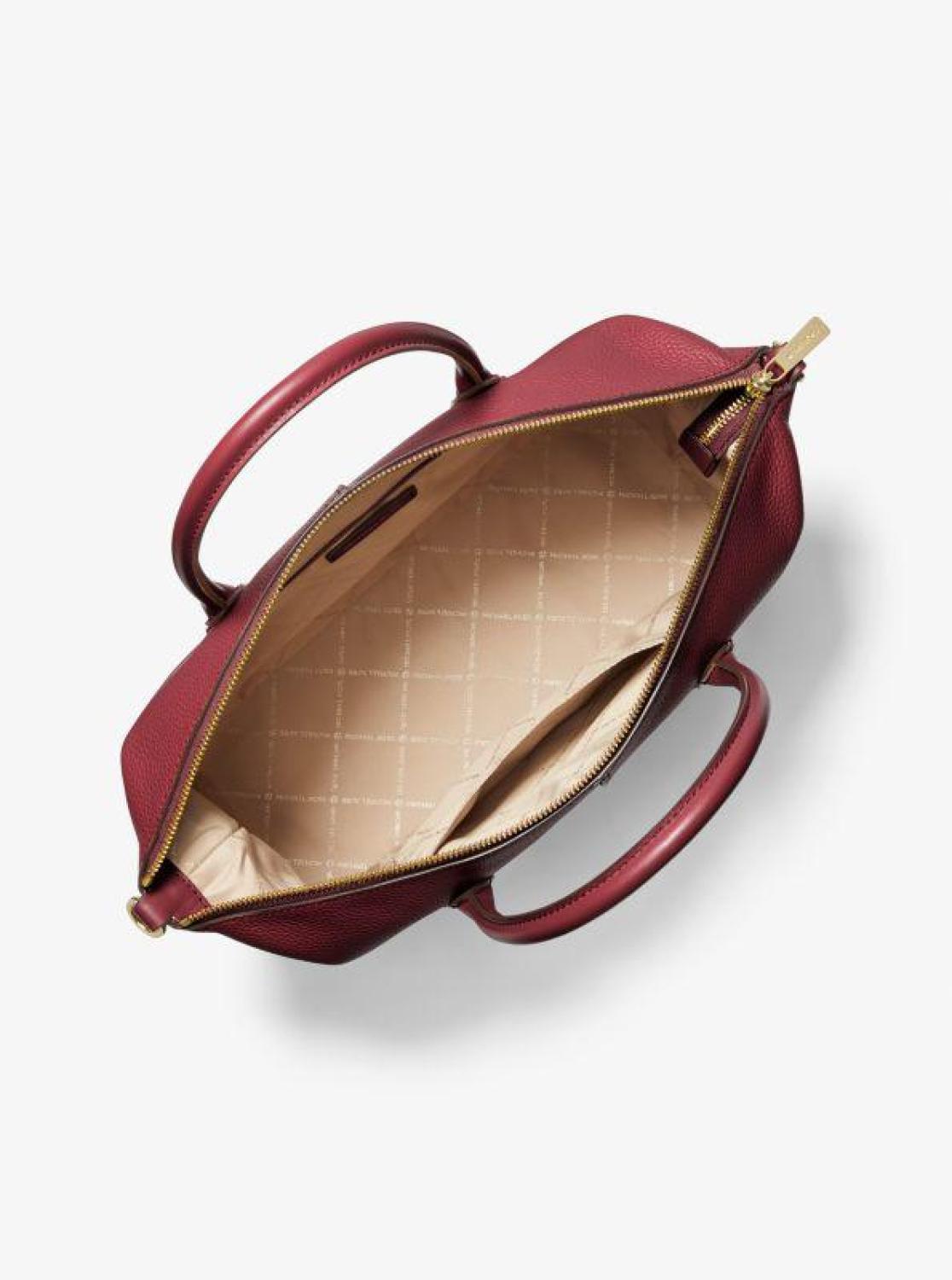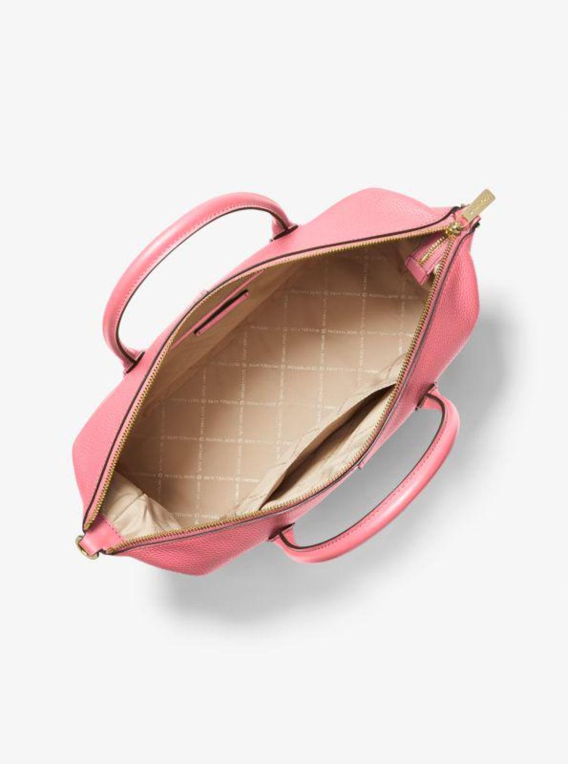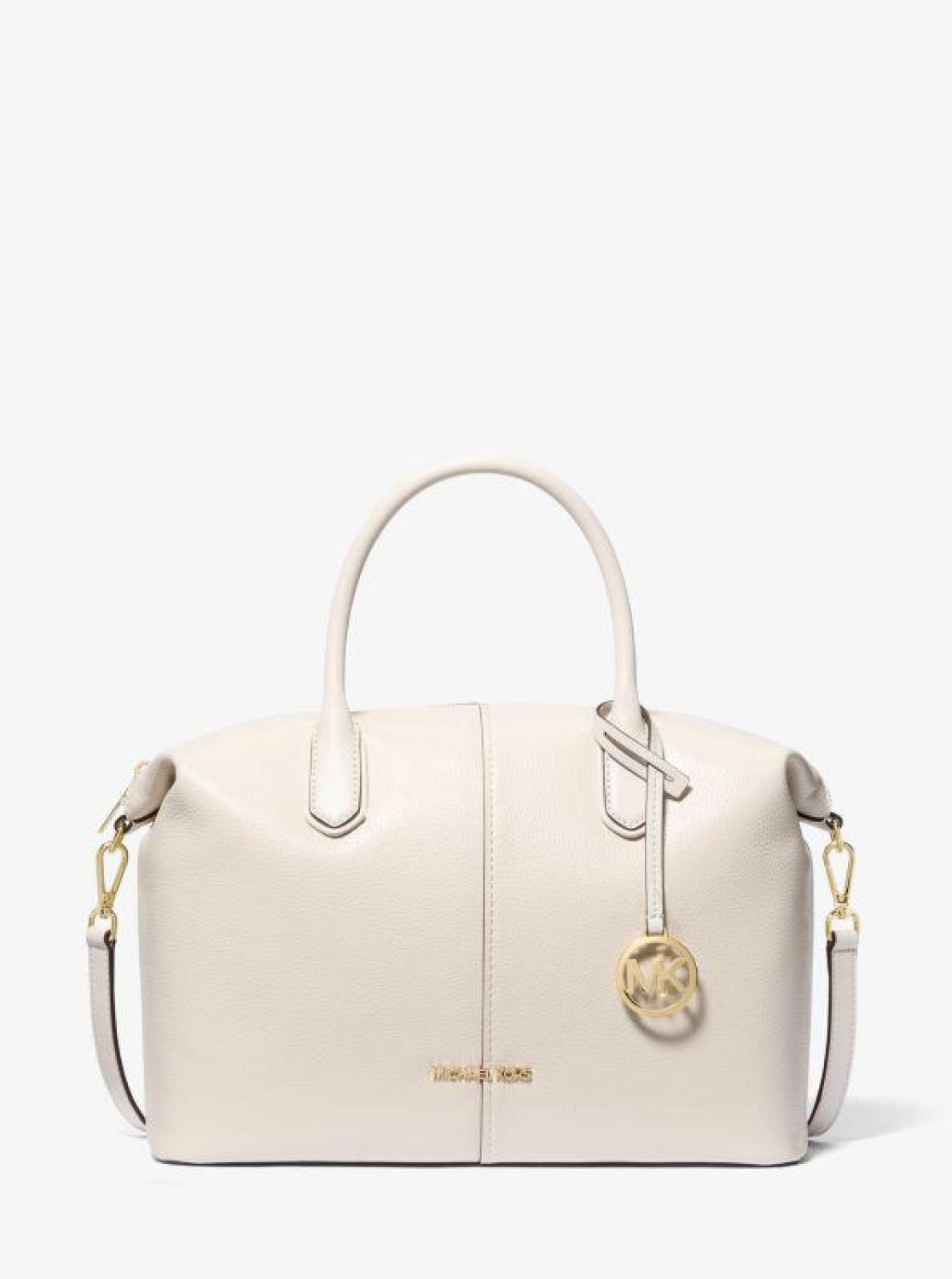 • From work days to getaways, the Hyde satchel ensures you’re ready for whatever comes your way. This pebbled leather bag boasts a spacious logo-lined interior that will easily fit your daily essentials, plus a water bottle or change of flats. Carry yours by the structured top handles or the removable shoulder strap.