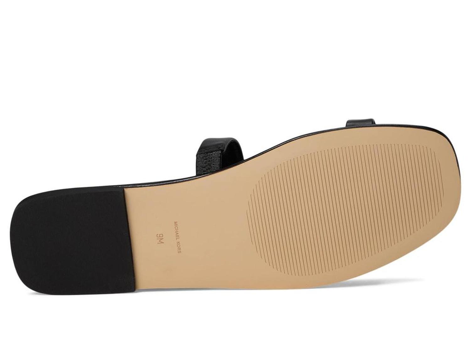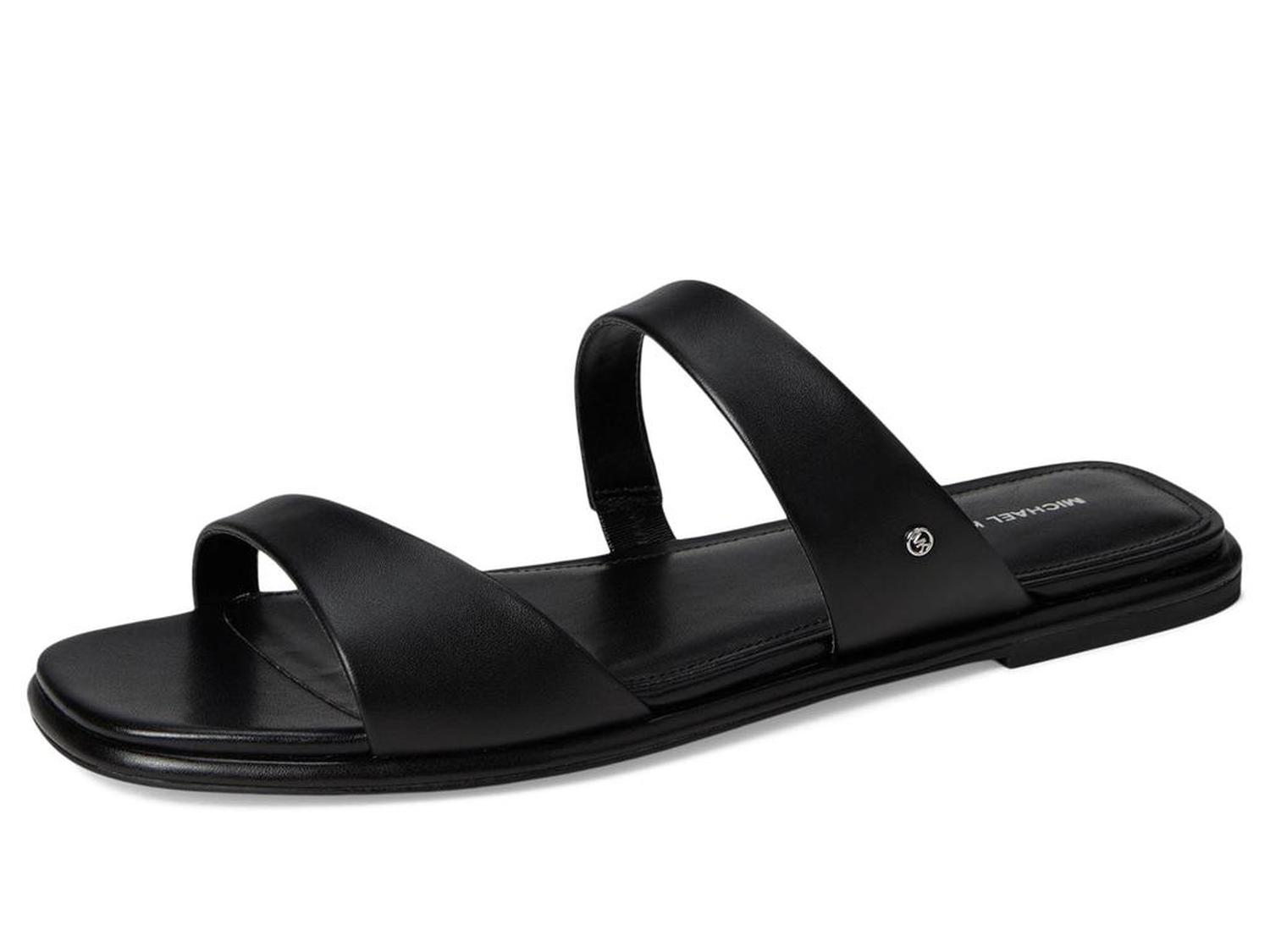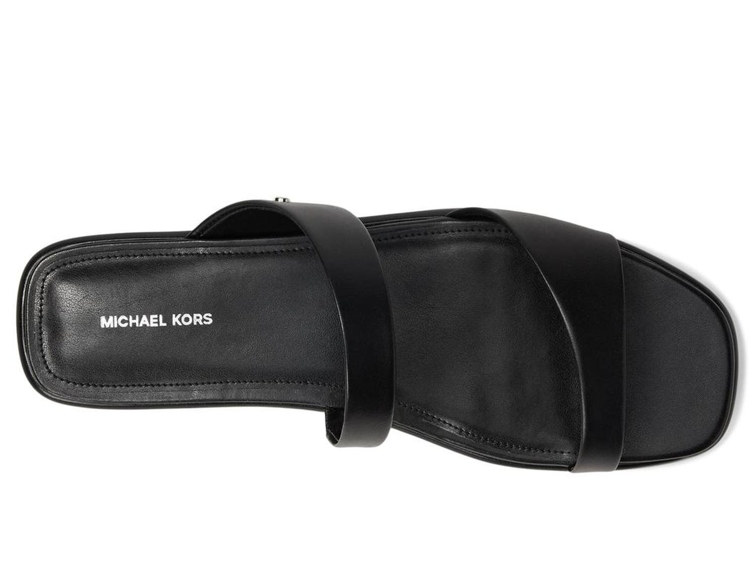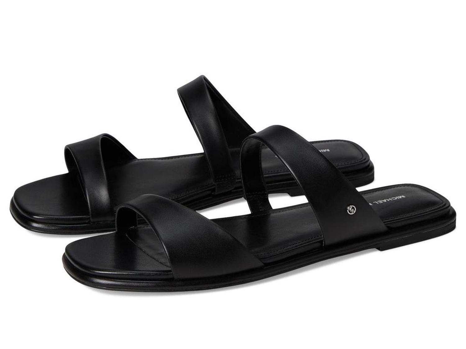 • Dressier sensibility without heels, the MICHAEL Michael Kors® Jaida Flat Sandals are an elegant and stylish option featuring a simple yet chic asymmetrical leather upper as the focal design element and curated for both special occasions and everyday style in mind. The branded hardware adds to their style. These slip-on sandals are made of a faux leather insole and polyurethane lining, making them for your everyday wear.