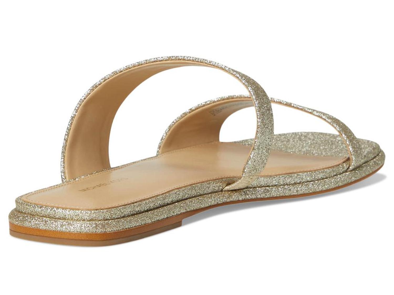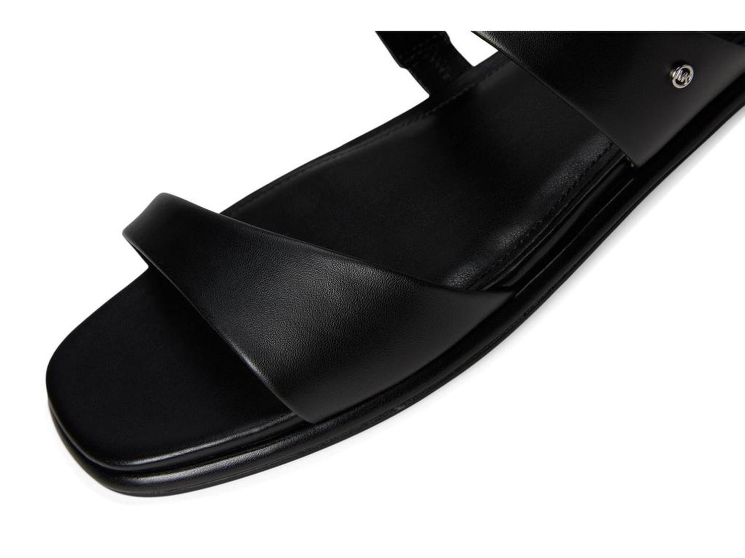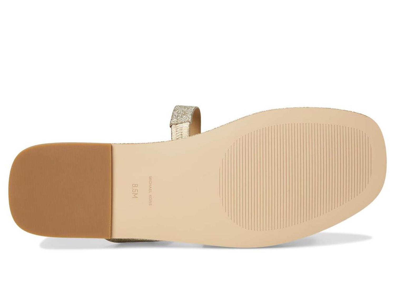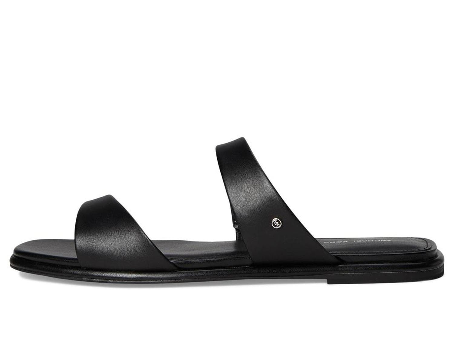 • Dressier sensibility without heels, the MICHAEL Michael Kors® Jaida Flat Sandals are an elegant and stylish option featuring a simple yet chic asymmetrical leather upper as the focal design element and curated for both special occasions and everyday style in mind. The branded hardware adds to their style. These slip-on sandals are made of a faux leather insole and polyurethane lining, making them for your everyday wear.