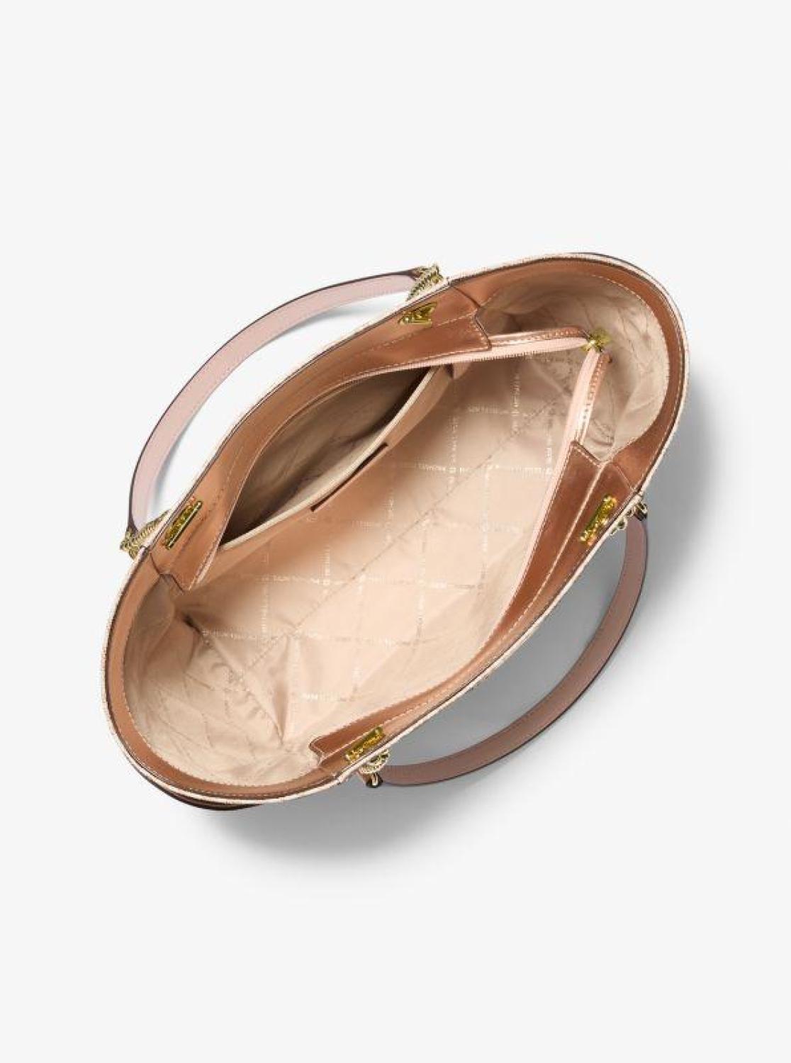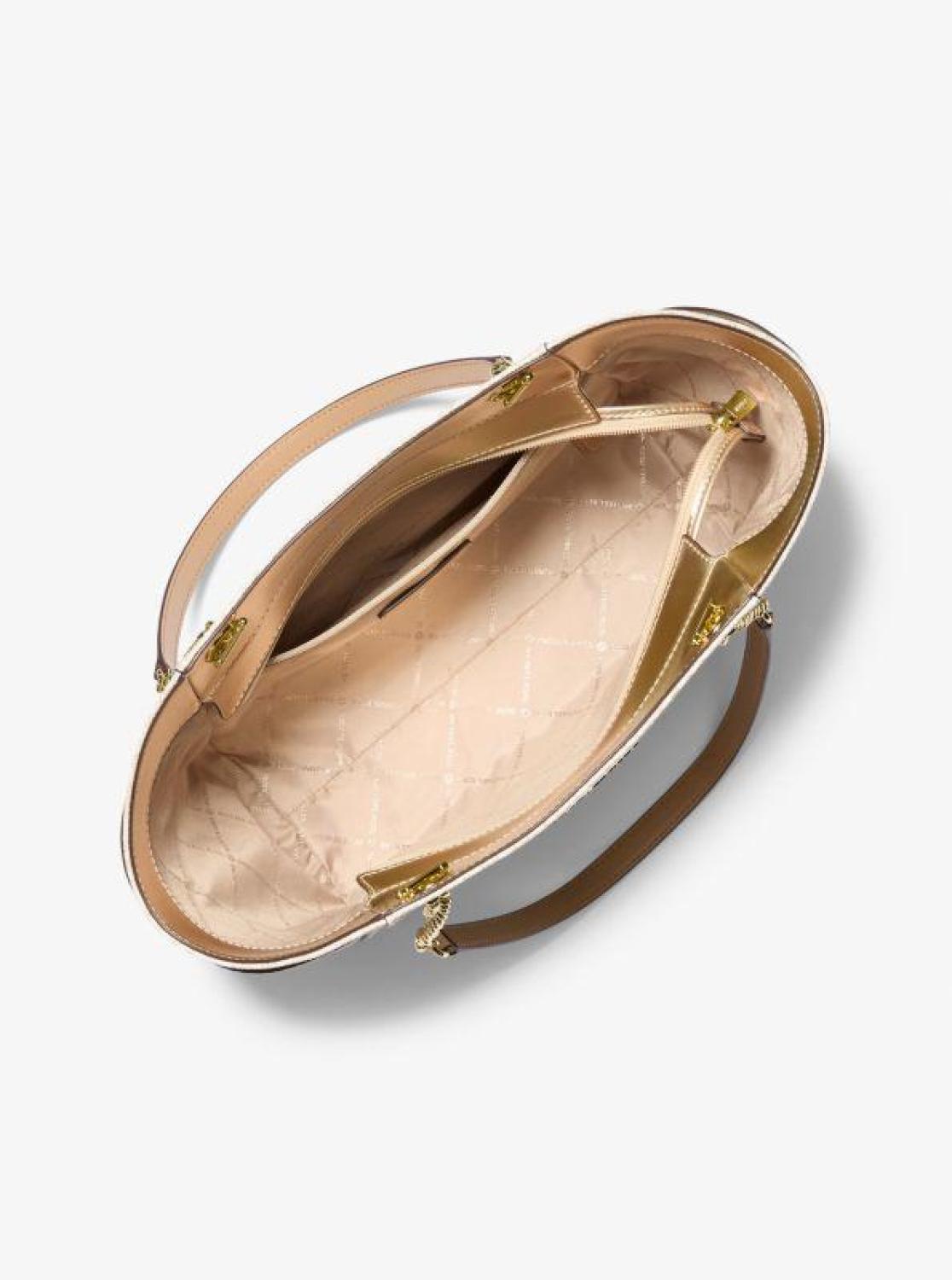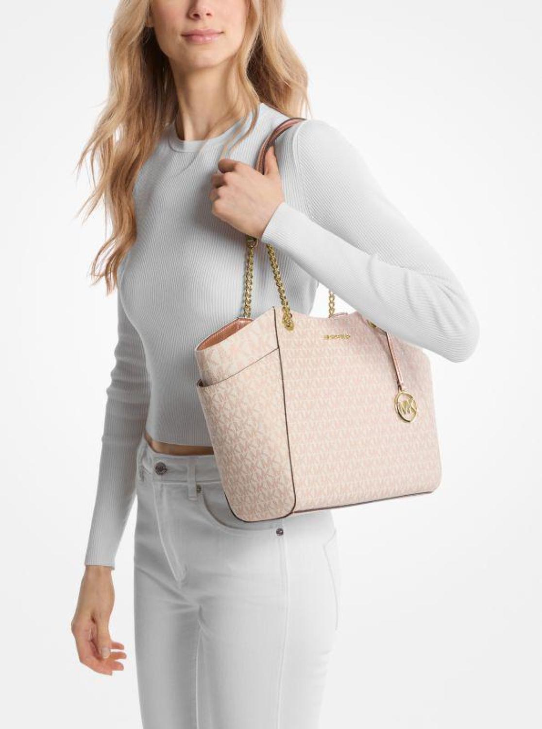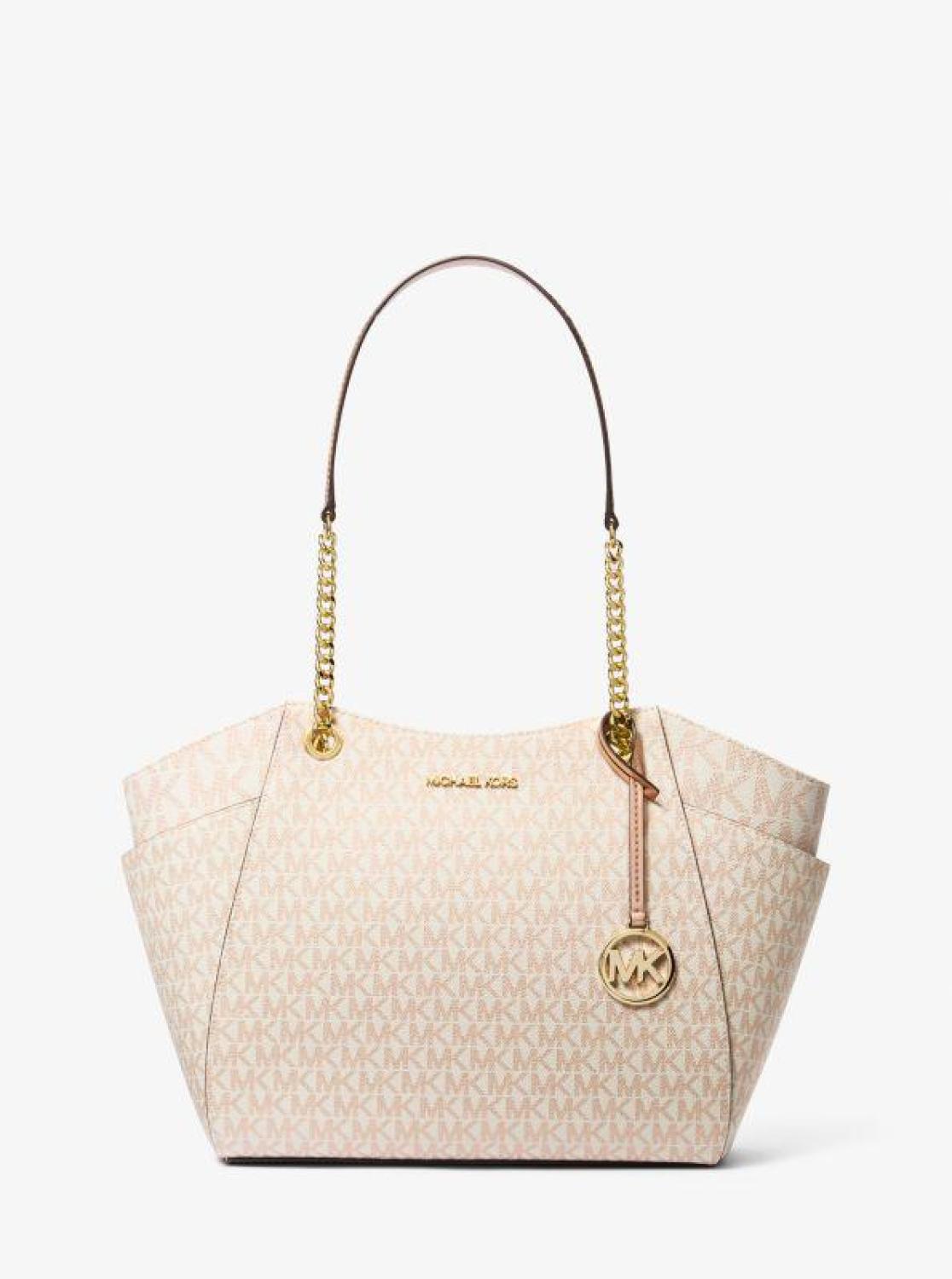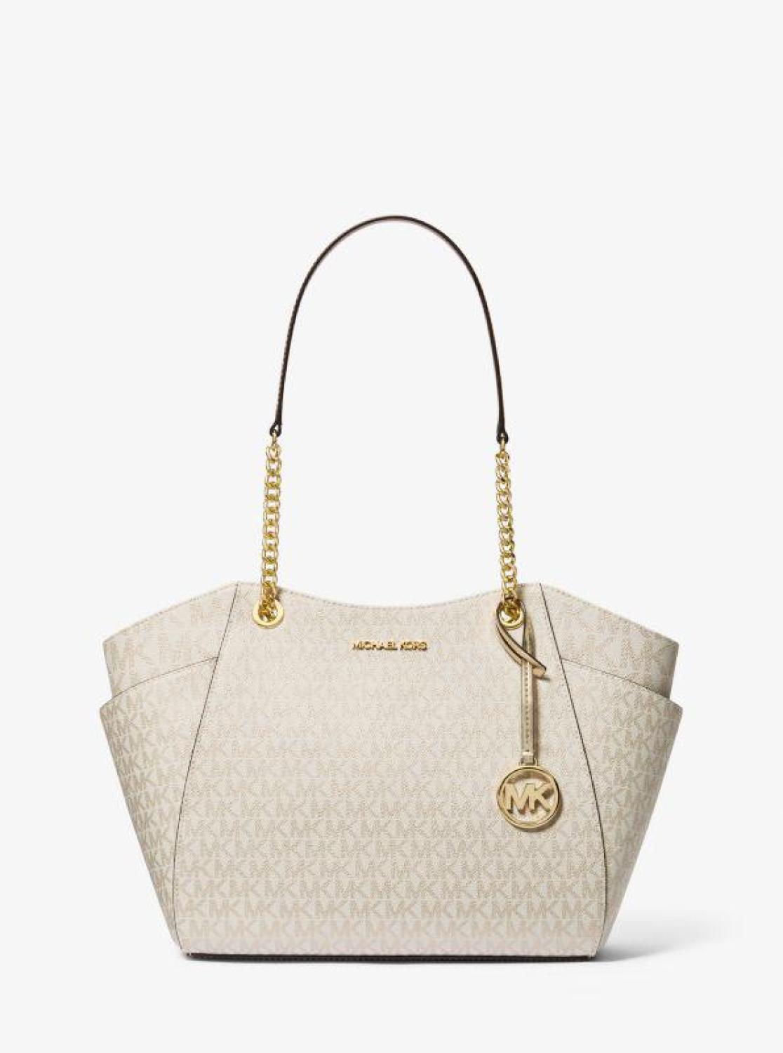 Ready to take you anywhere, this Jet Set shoulder bag is crafted from logo-print canvas and finished with our signature charm. The architectural shape features convenient side pockets and a secure top-zip fastening. Use it to carry all your travel essentials.