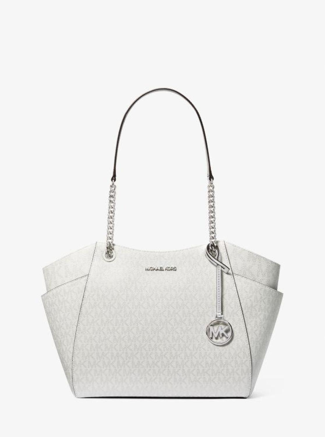 Ready to take you anywhere, this Jet Set shoulder bag is crafted from logo-print canvas and finished with our signature charm. The architectural shape features convenient side pockets and a secure top-zip fastening. Use it to carry all your travel essentials.