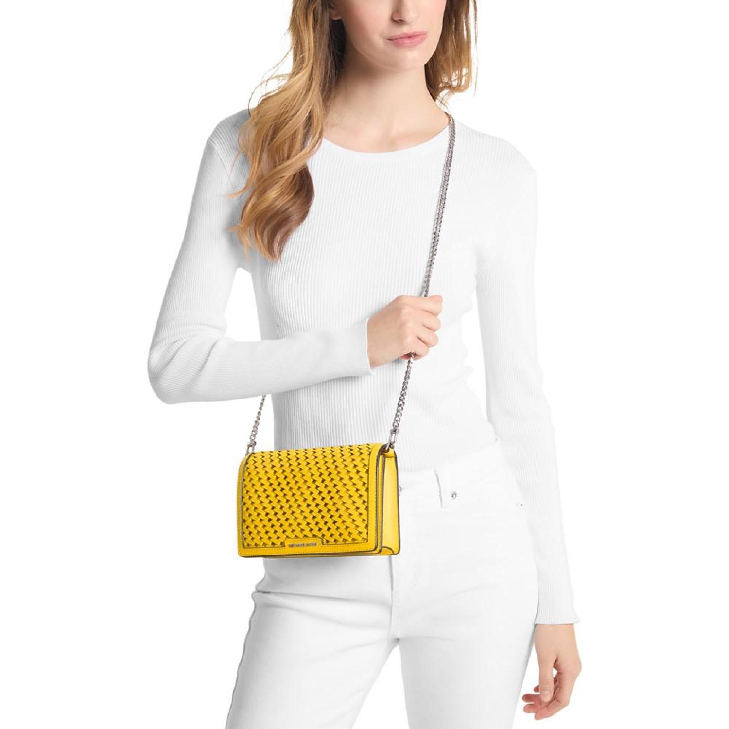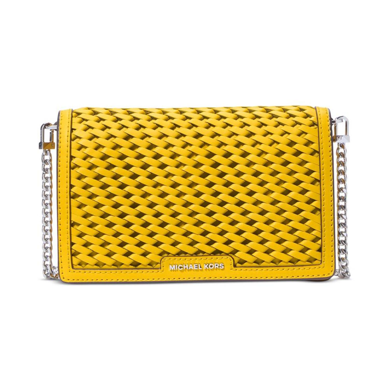 • A glamorous take on an everyday accessory, the Jet Set bag from MICHAEL Michael Kors features a woven exterior and high-shine details.