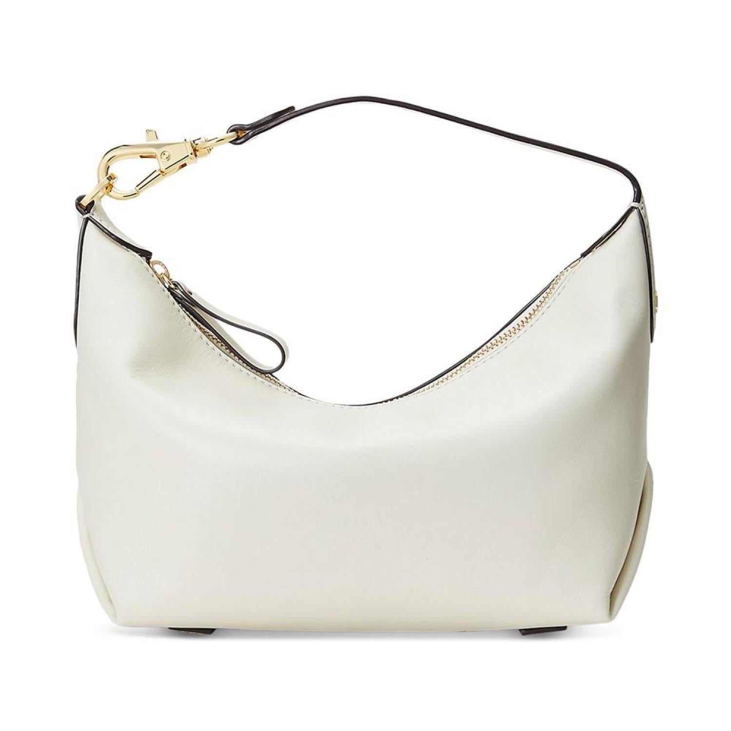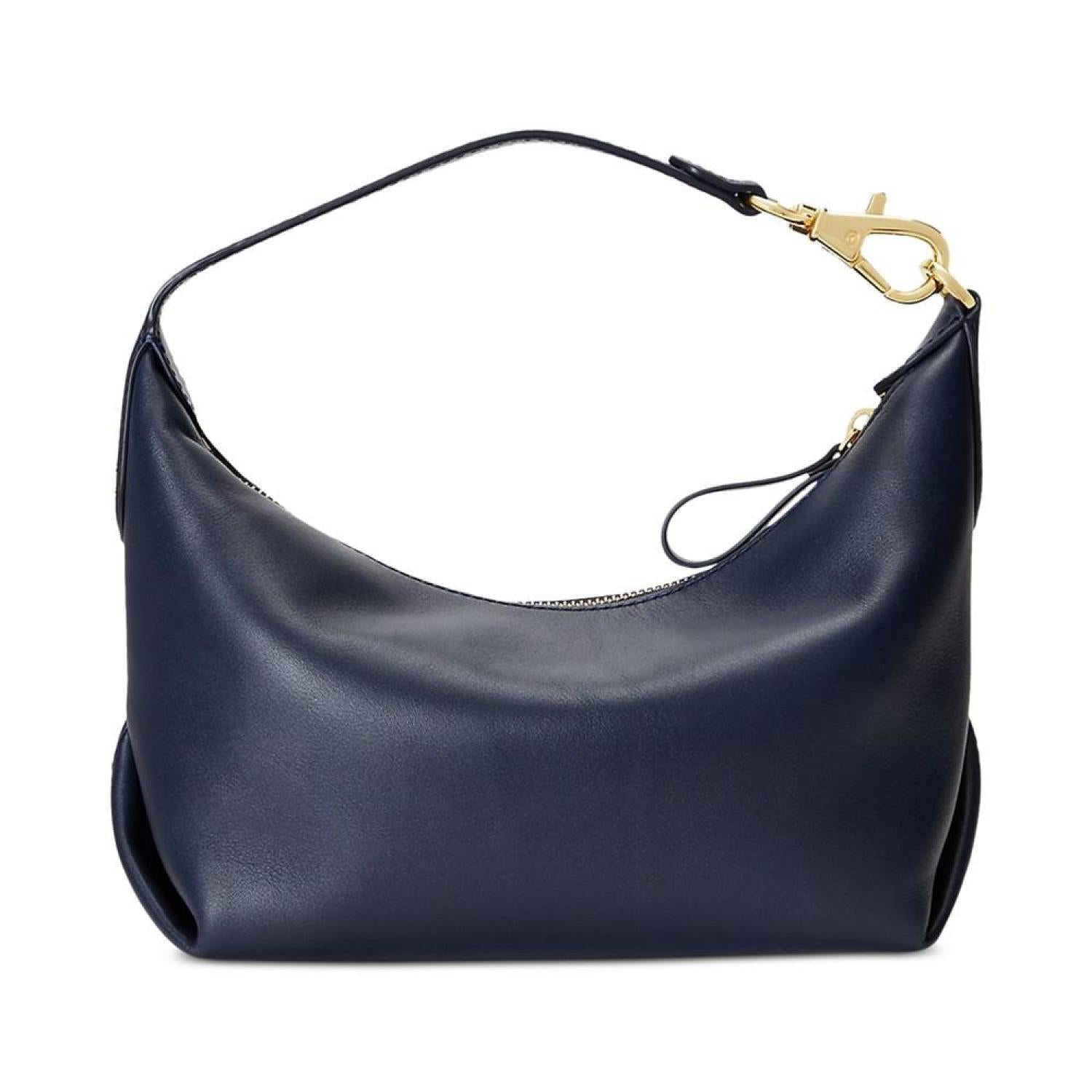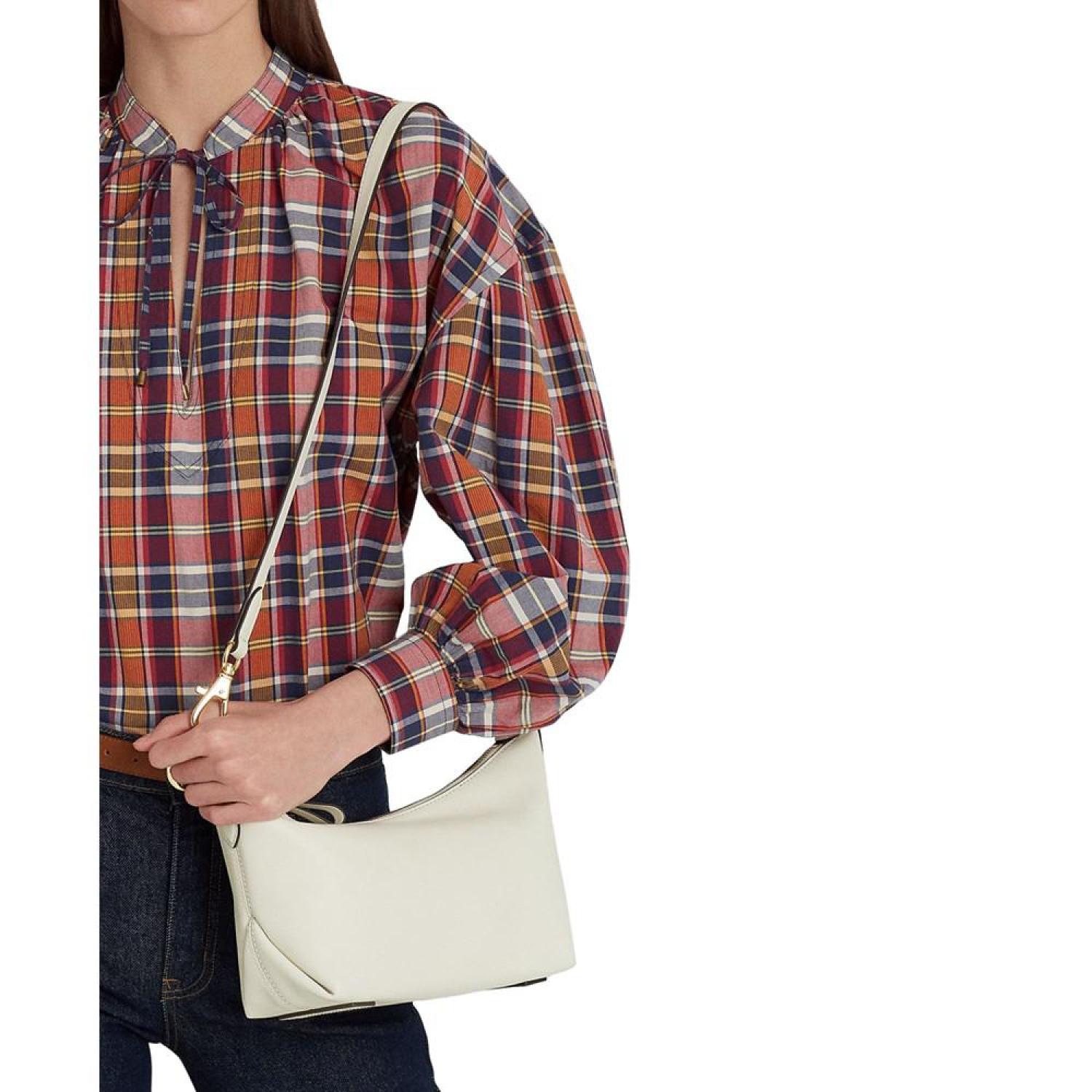 Defined by its convertible nature, Lauren Ralph Lauren's Kassie Small Leather Shoulder Bag is a chic accessory featuring an adjustable dog-clip strap that allows for versatile styling. Medium sized bag; 12"W x 8"H x 4-3/4"D (width is measured across the bottom of handbag); 1.2 lbs. approx. weight Silhouette is based off 5'9" model 20"L adjustable strap Zippered closure Gold-tone hardware Interior zip & slip pockets Dust bag included Leather; lining: polyester Professional leather clean Imported