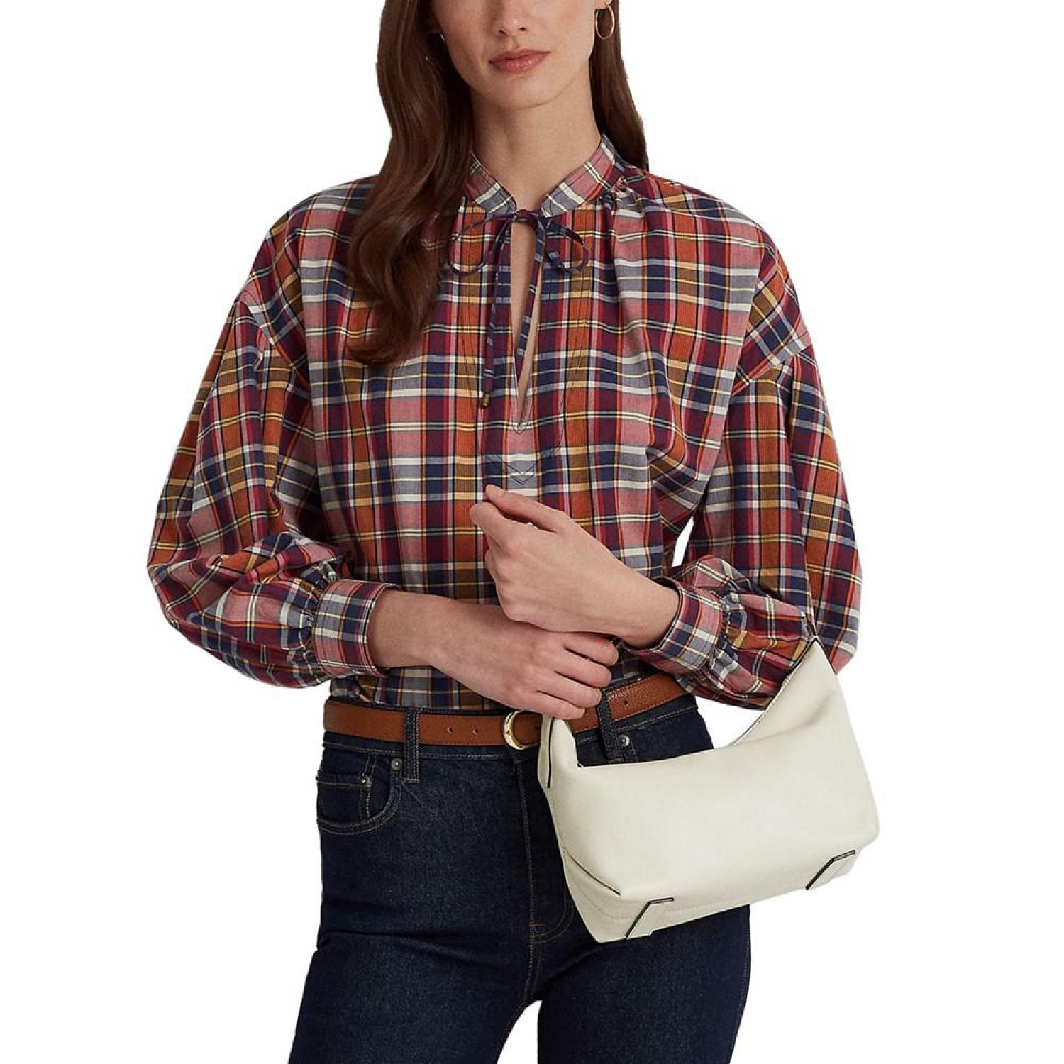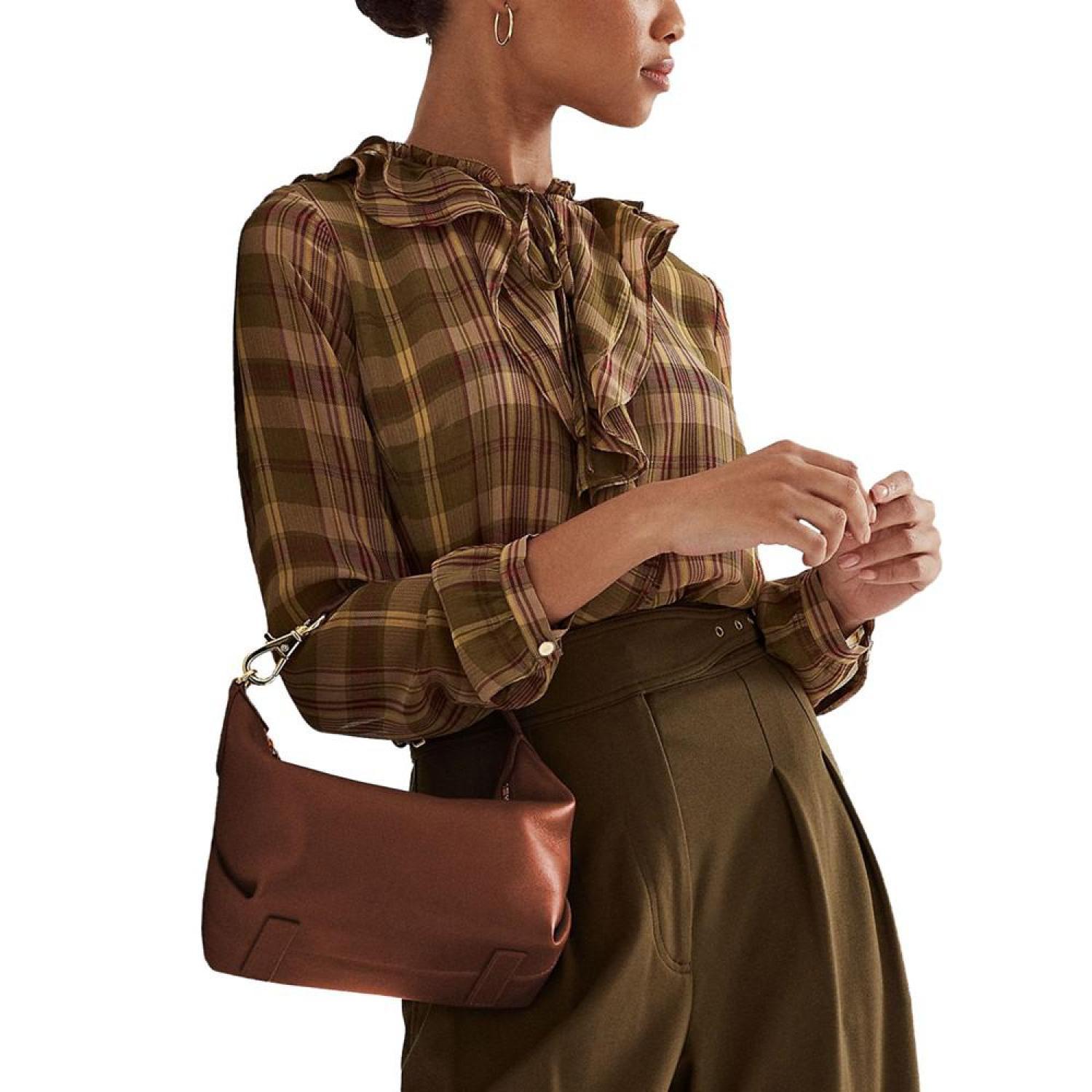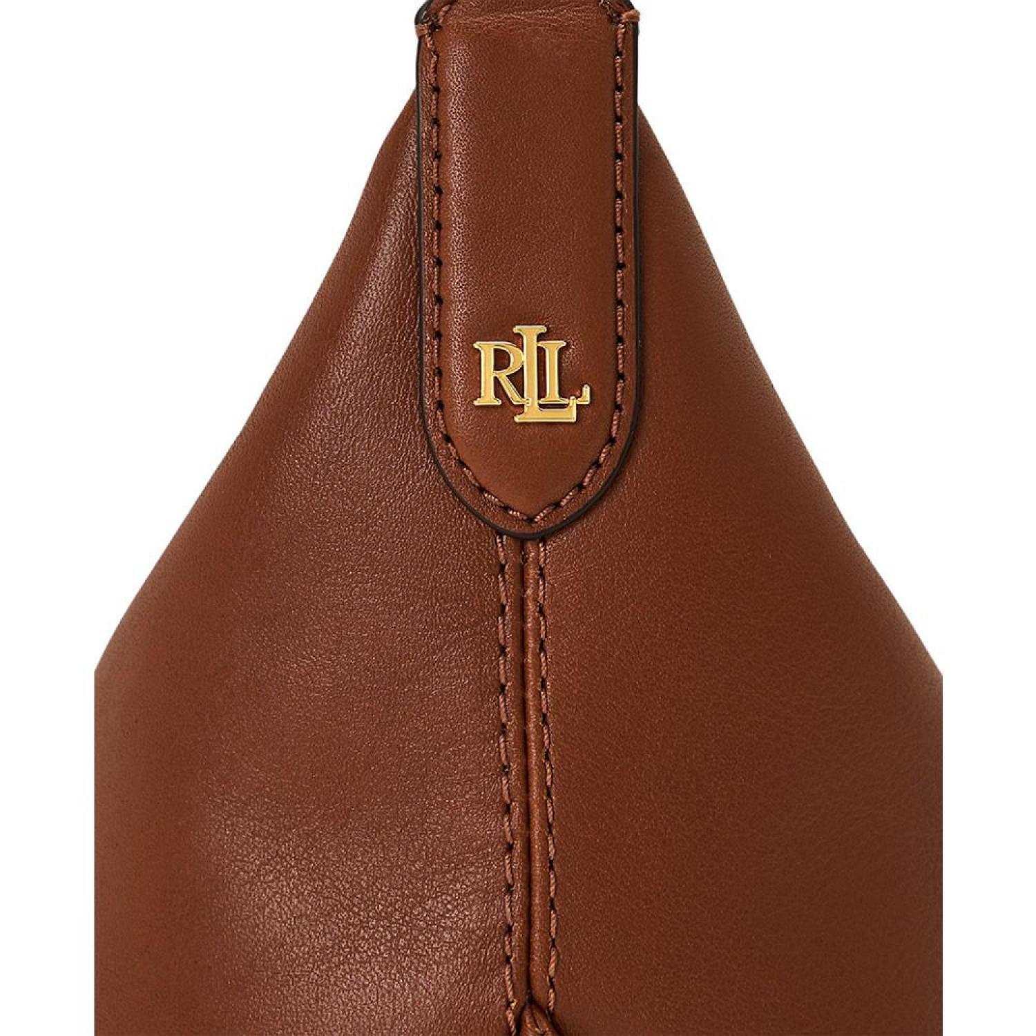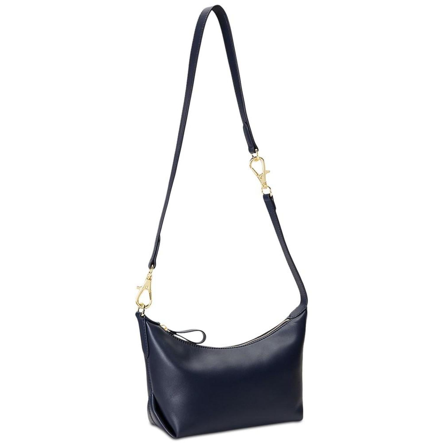 Defined by its convertible nature, Lauren Ralph Lauren's Kassie Small Leather Shoulder Bag is a chic accessory featuring an adjustable dog-clip strap that allows for versatile styling. Medium sized bag; 12"W x 8"H x 4-3/4"D (width is measured across the bottom of handbag); 1.2 lbs. approx. weight Silhouette is based off 5'9" model 20"L adjustable strap Zippered closure Gold-tone hardware Interior zip & slip pockets Dust bag included Leather; lining: polyester Professional leather clean Imported