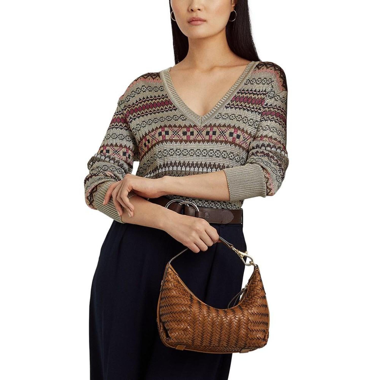 • Featuring a curved silhouette crafted of woven leather, Lauren Ralph Lauren's Kassie is a chic accessory that is as versatile as it is stylish.