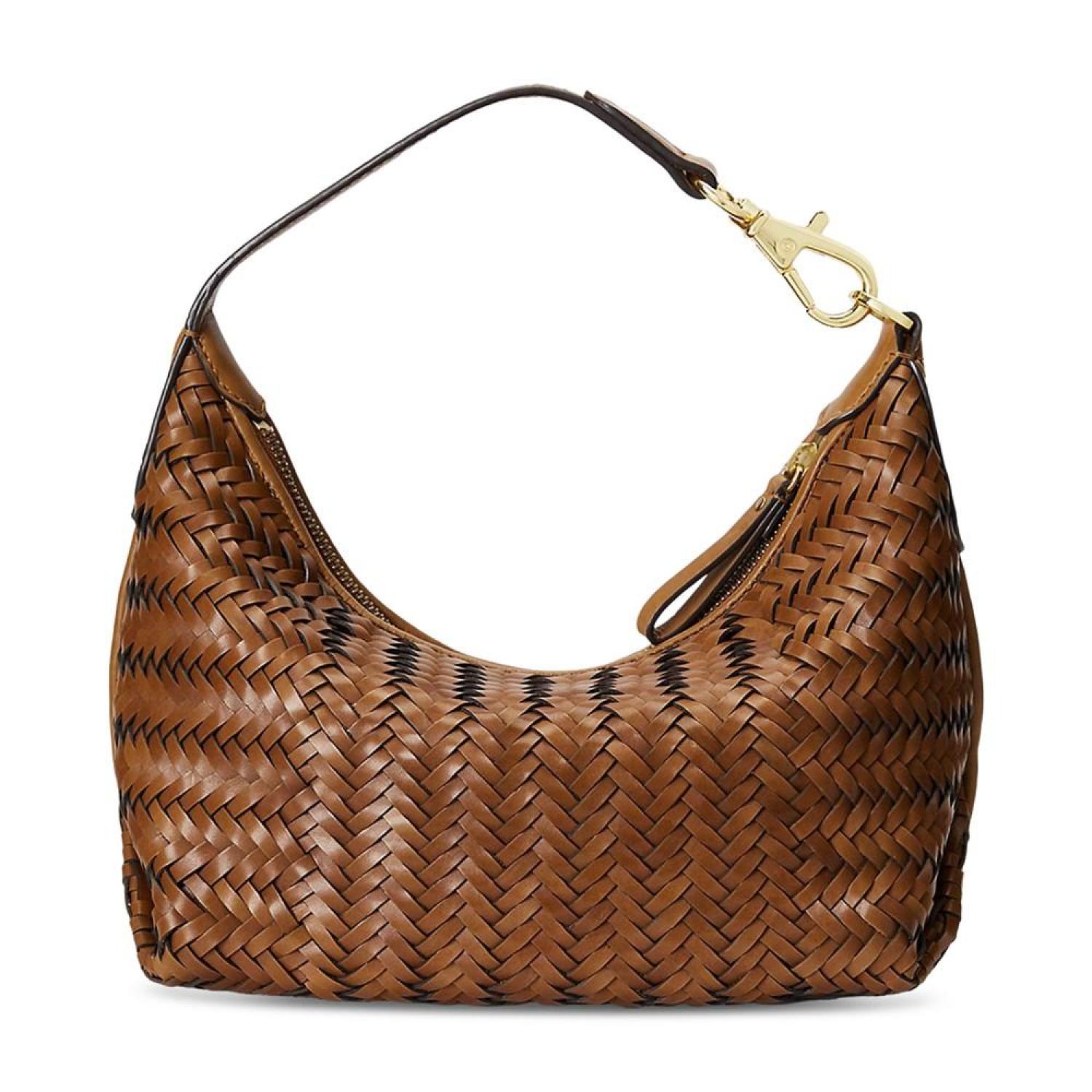 Featuring a curved silhouette crafted of woven leather, Lauren Ralph Lauren's Kassie is a chic accessory that is as versatile as it is stylish.