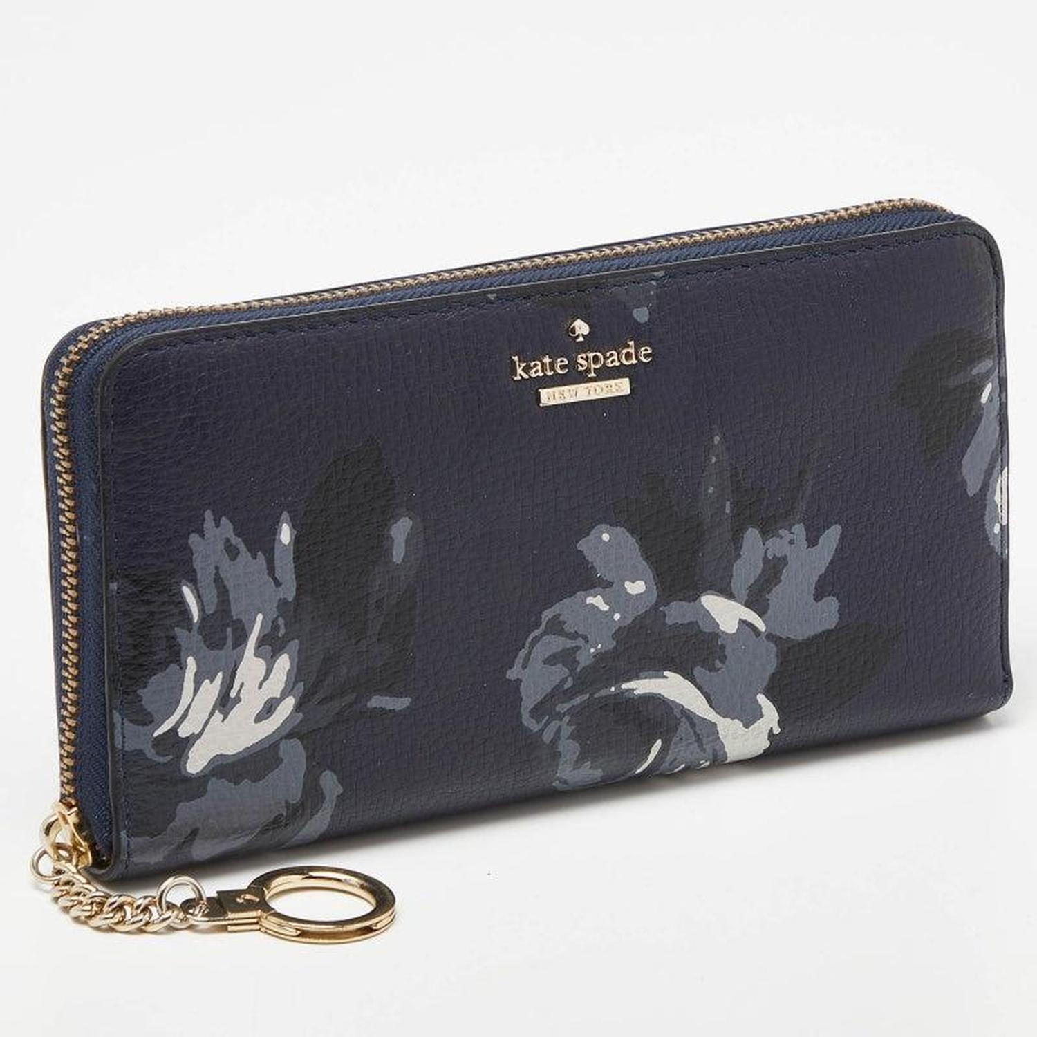 Kate Spade Blue Floral Print Leather Zip Around Wallet