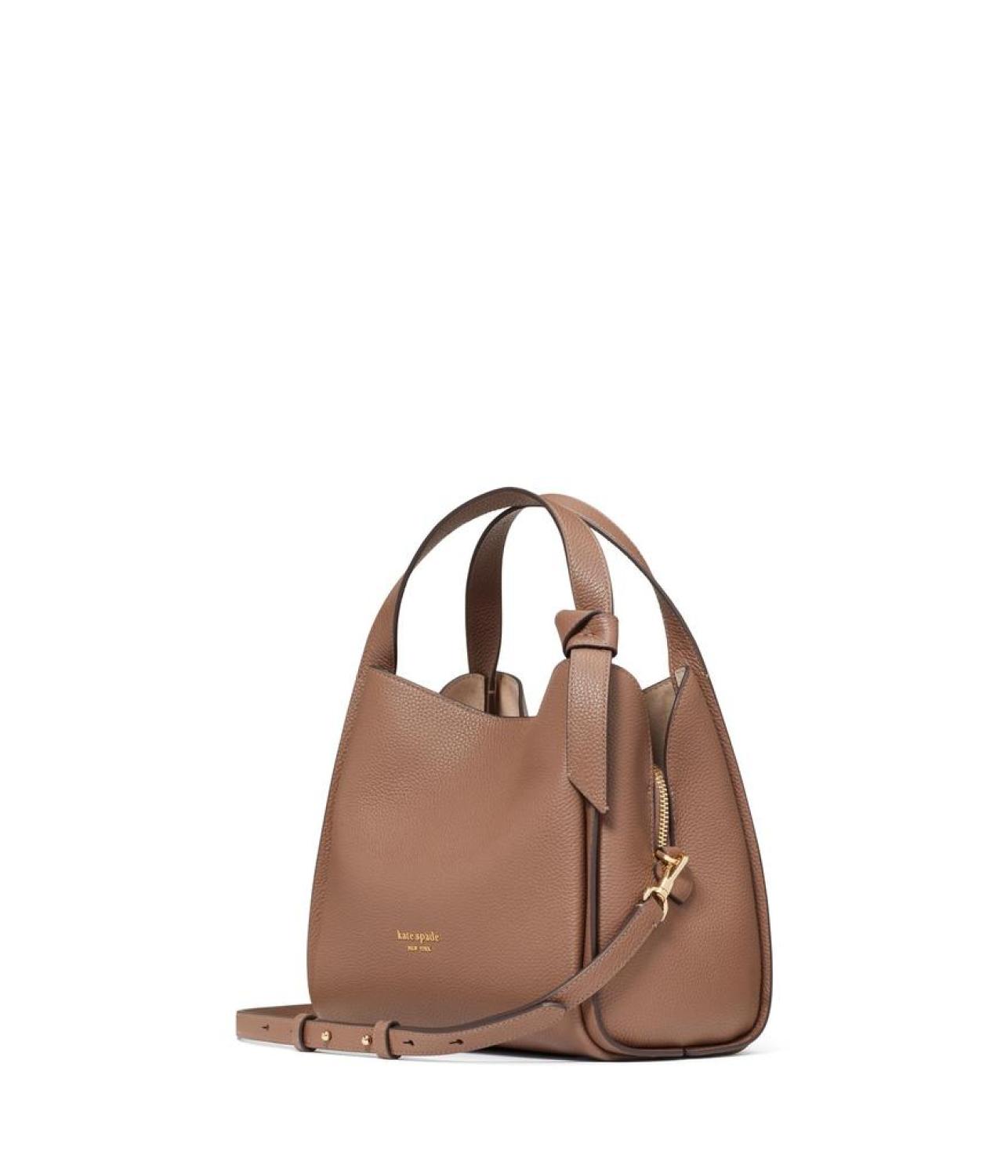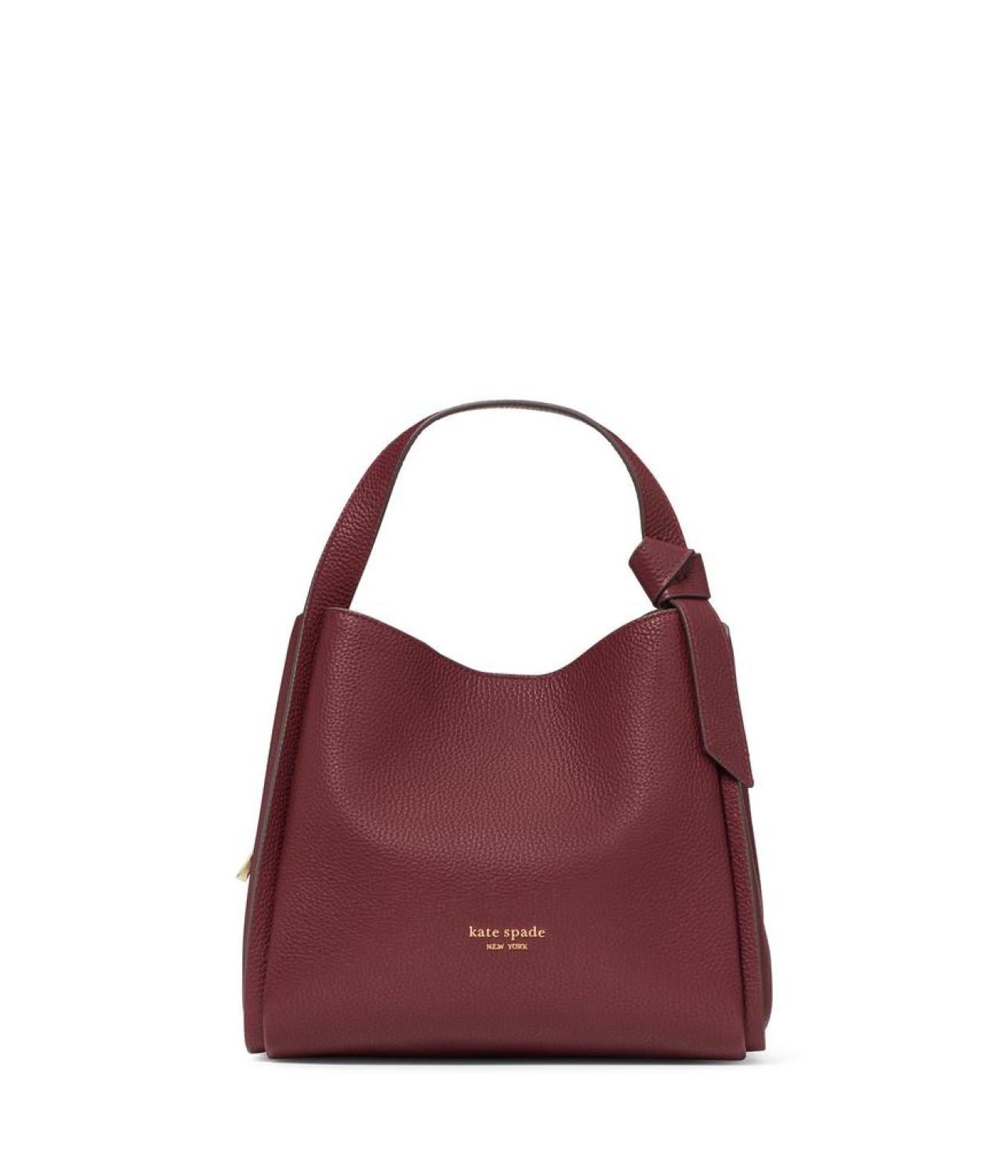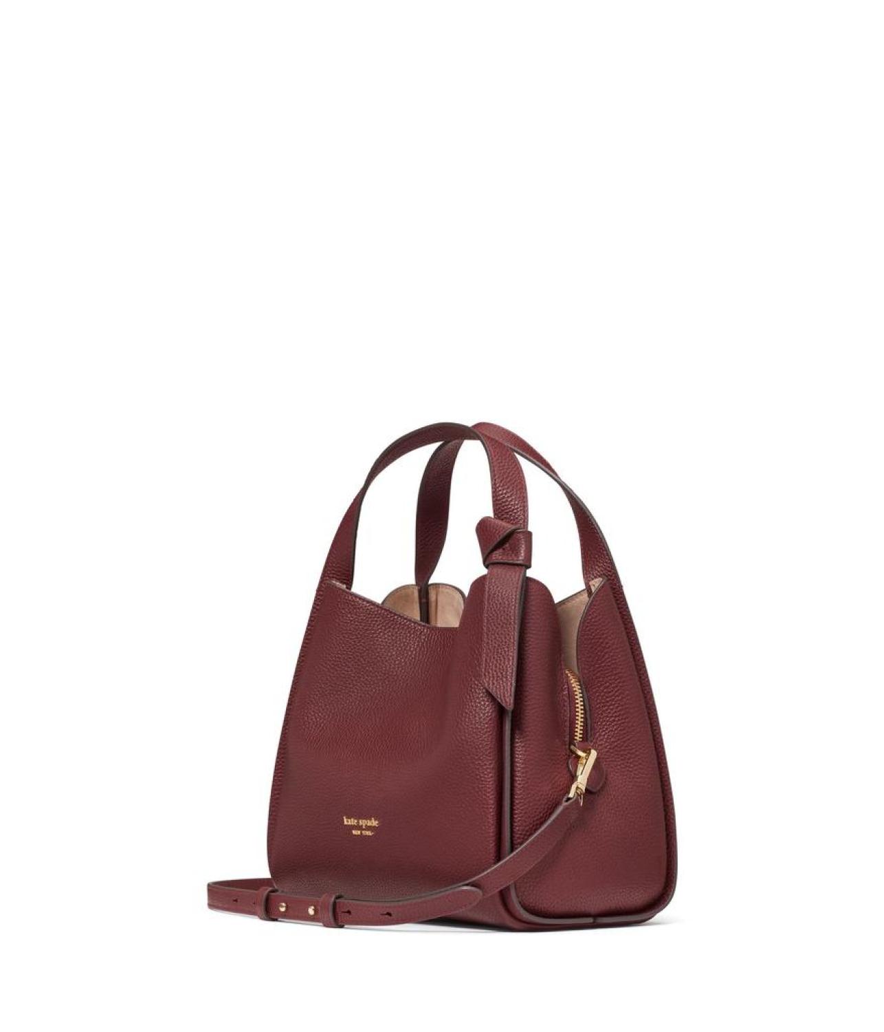 Add style to your look carrying the Kate Spade New York® Knott Pebbled Leather Medium Crossbody Tote. This chic shoulder bag is made of high-quality leather material, ensuring durability and style. The magnetic snap closure keeps your belongings secure, while the zippered interior compartment and interior pocket with magnetic snap closure provide plenty of storage space for your essentials.