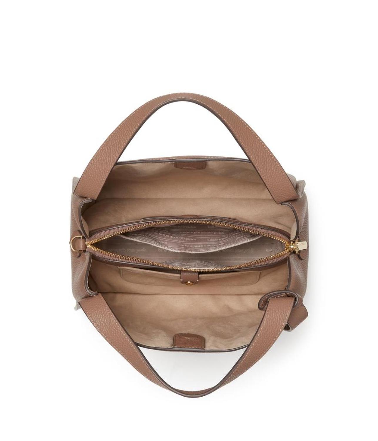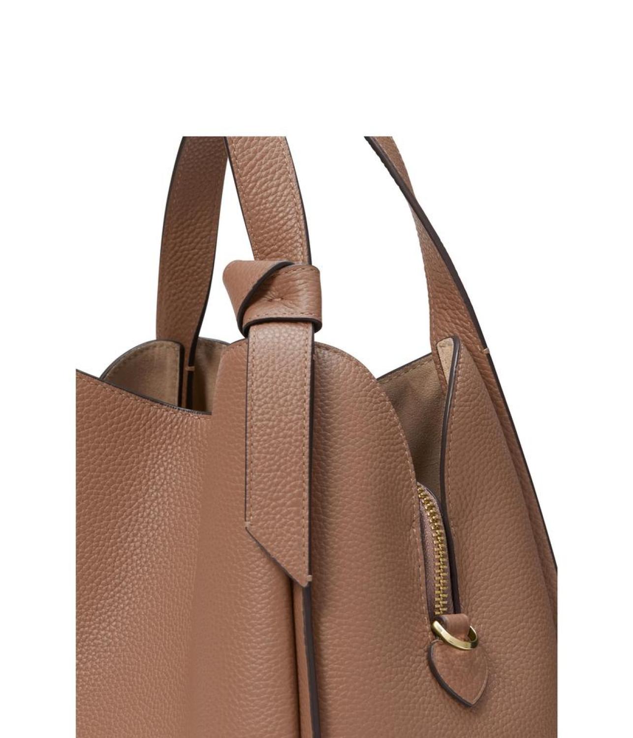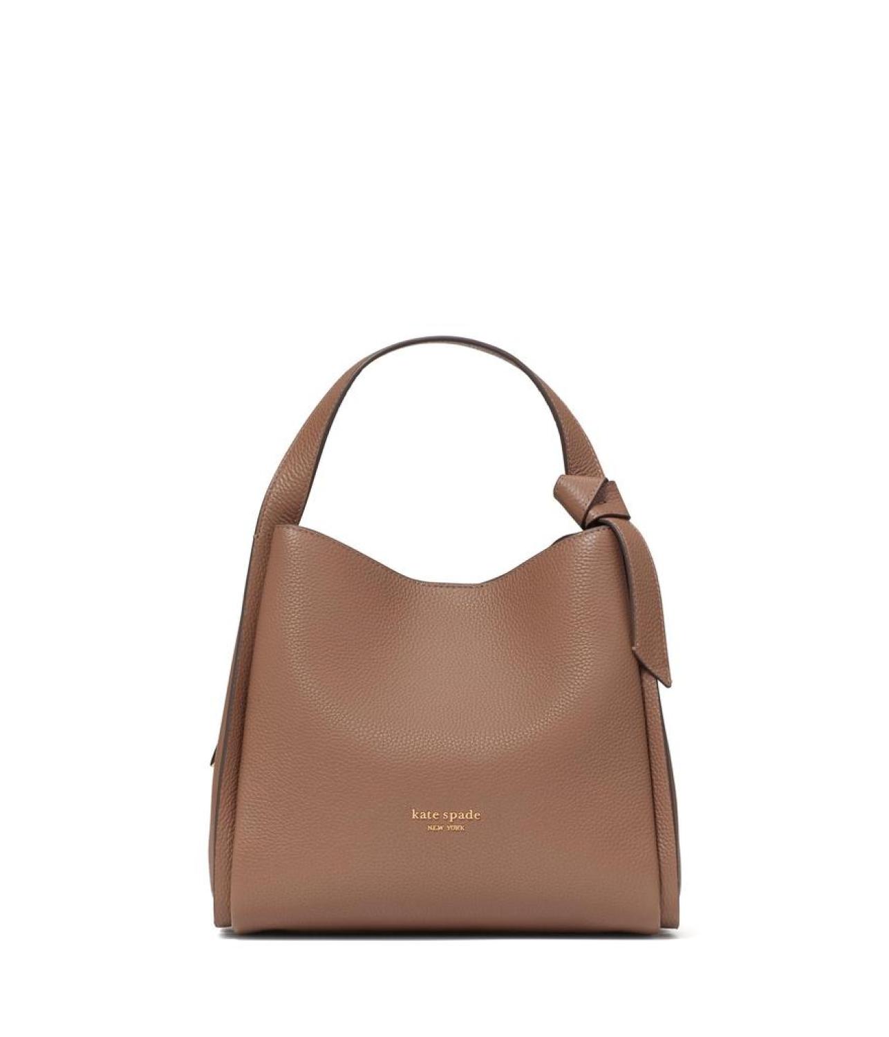 • Add style to your look carrying the Kate Spade New York® Knott Pebbled Leather Medium Crossbody Tote. This chic shoulder bag is made of high-quality leather material, ensuring durability and style. The magnetic snap closure keeps your belongings secure, while the zippered interior compartment and interior pocket with magnetic snap closure provide plenty of storage space for your essentials.