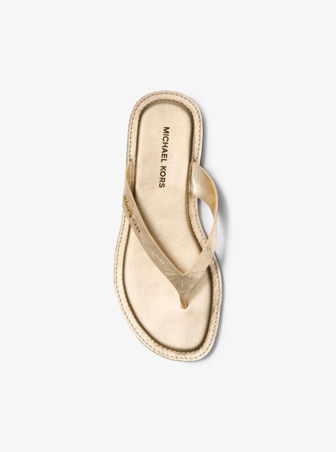A polished take on a casual essential, our Koko flip flops are crafted from crinkled metallic leather with a stacked sole for stability and durability. Slide them on with everything, from casual weekend wear to feminine dresses. • Flip flop • Leather • Lining: polyurethane blend • Sole: rubber • Open toe • Slip on • Imported • Flip flop • Leather • Lining: polyurethane blend • Sole: rubber • Open toe • Slip on • Imported