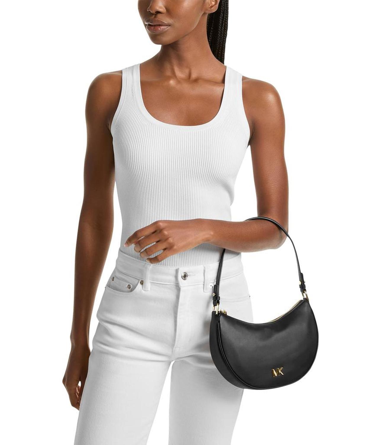 Look fashionable and trendy carrying the MICHAEL Michael Kors® Kyla Small Convertible Pouchette. Crafted from leather, this bag features zippered closure, adjustable shoulder strap, one interior slip pocket, and brand logo on the front.