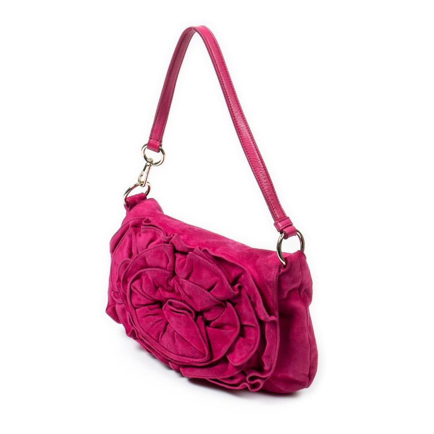 Yves Saint Laurent Shoulder Bag in Pink Suede Leather and Gold hardware. Dimensions - 31*18*3cm. Serial number - 112930-001013. Inclusions - Dustbag. Pre-Owned