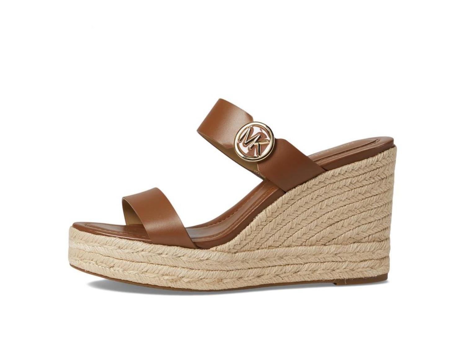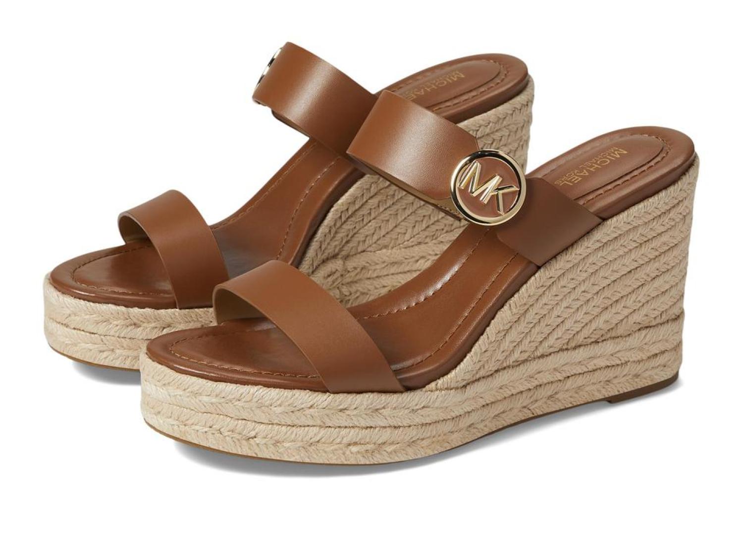 • Endlessly versatile and effortlessly chic, the MICHAEL Michael Kors® Lucinda Wedge Heels are going to be your favorite pick for the warm weather rotation. Elevated by a jute-wrapped wedge heel and sole, these designer shoes feature a two-strap leather upper with branded hardware, a soft faux leather lining, and a comfort cushioned synthetic footbed.
