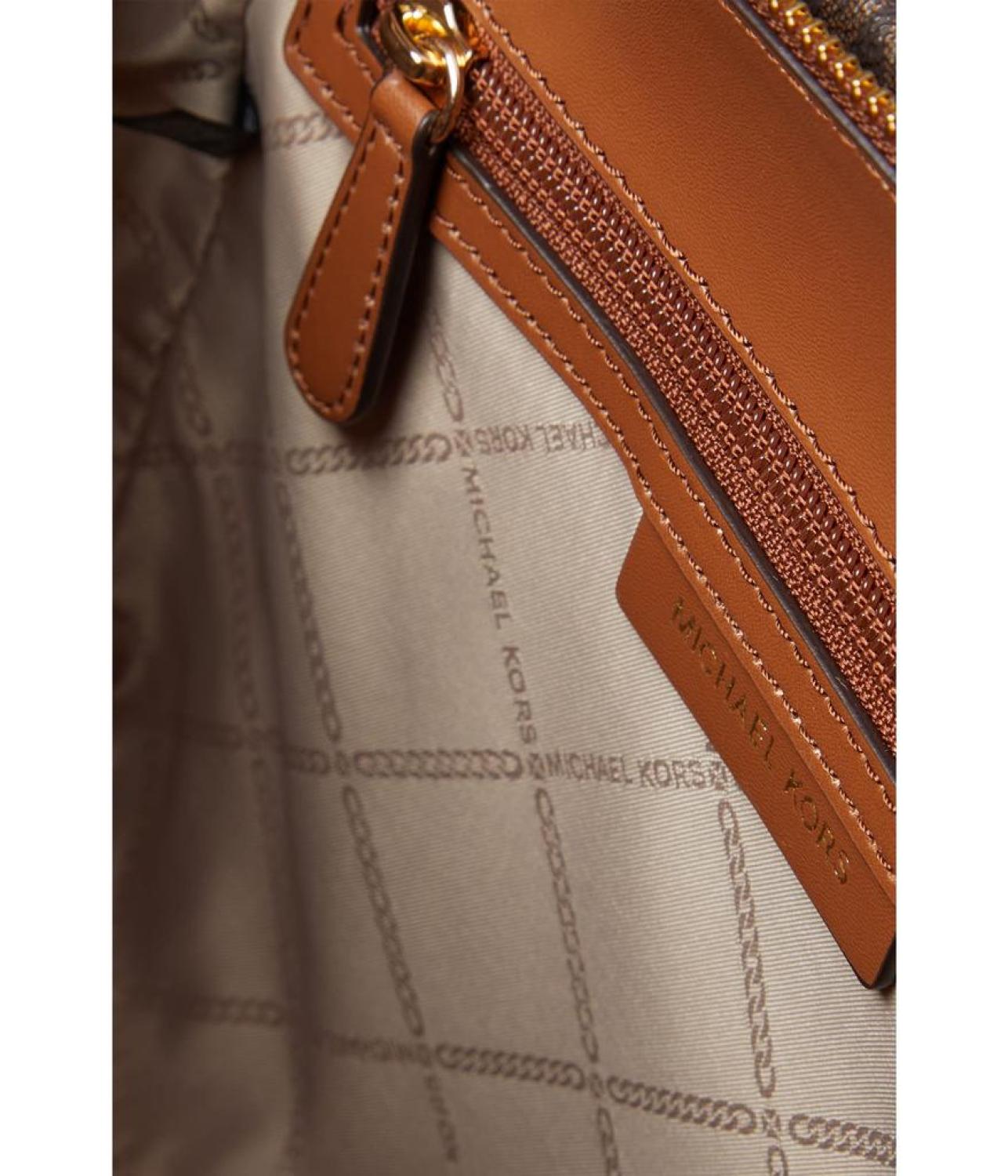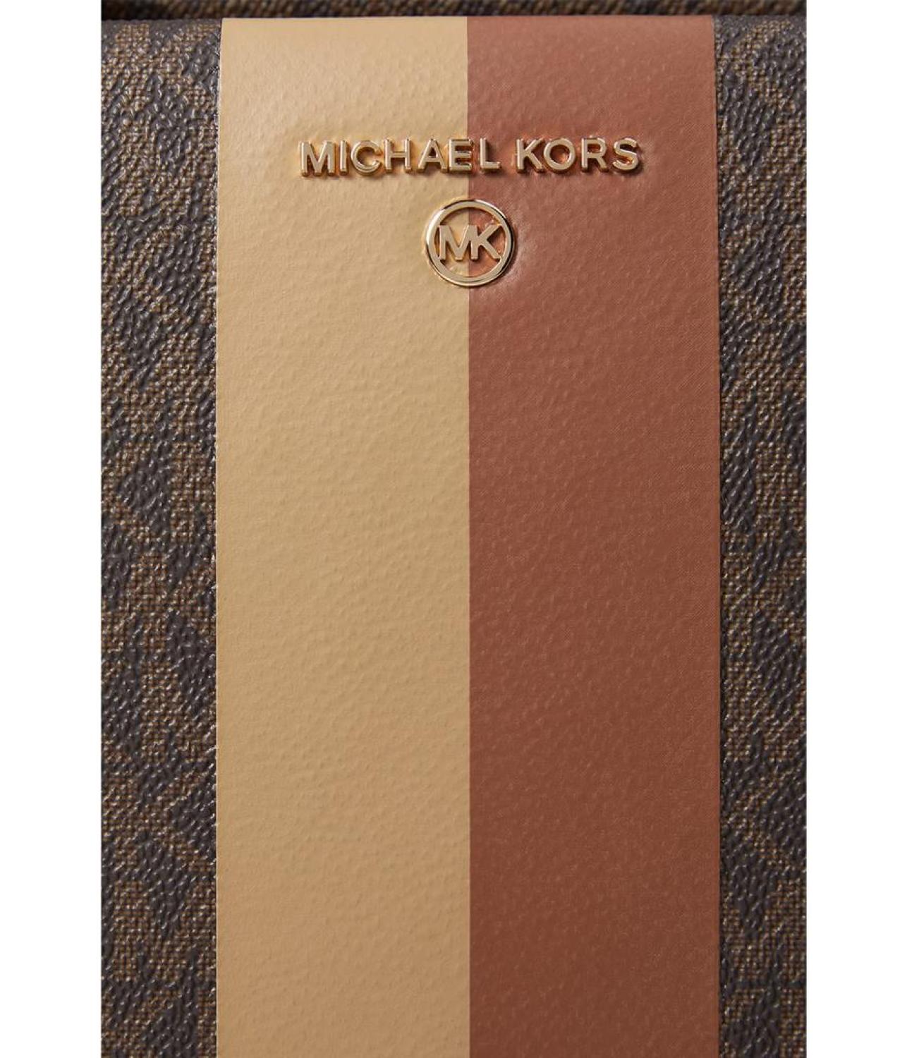 Look absolutely stylish while carrying your belongings in a convenient and comfortable manner in the MICHAEL Michael Kors® Marilyn Medium Satchel. Framed in a structured and spacious form with a monogram-embossed exterior with a printed striped pattern on the center, the bag features zippered top closure that reveals one interior back wall zippered pocket and two front wall slip pockets. With the two exterior front and back slip compartments, you get some additional storage.