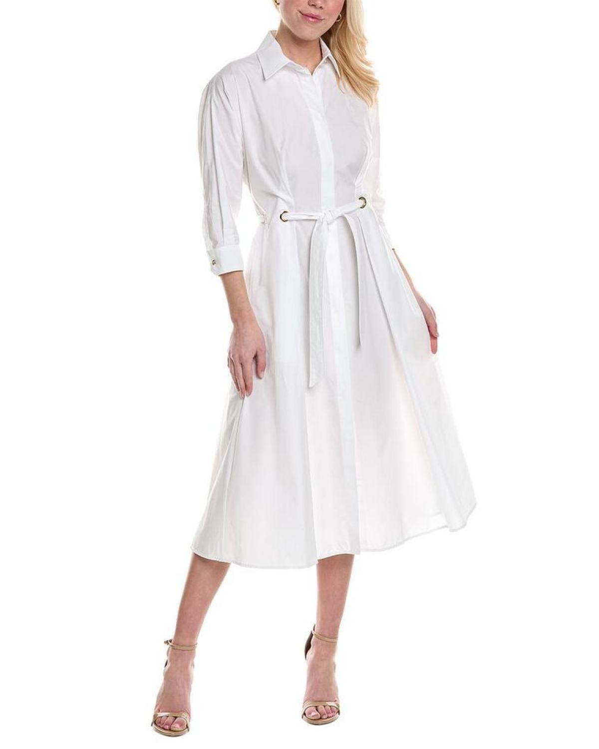 Elevate your wardrobe with the Max Mara Flavio Midi Dress. This stunning piece embodies the brand's reputation for creating feminine and sophisticated designs with an undeniable Italian influence. The dress features dolman sleeves, a tie sash at the waist, four pocket styling, and a pleated front skirt for a flattering silhouette. Made from 100% cotton, this dress is perfect for any occasion. Pair it with your favorite heels for a chic and elegant look. Add this timeless piece to your collection today.