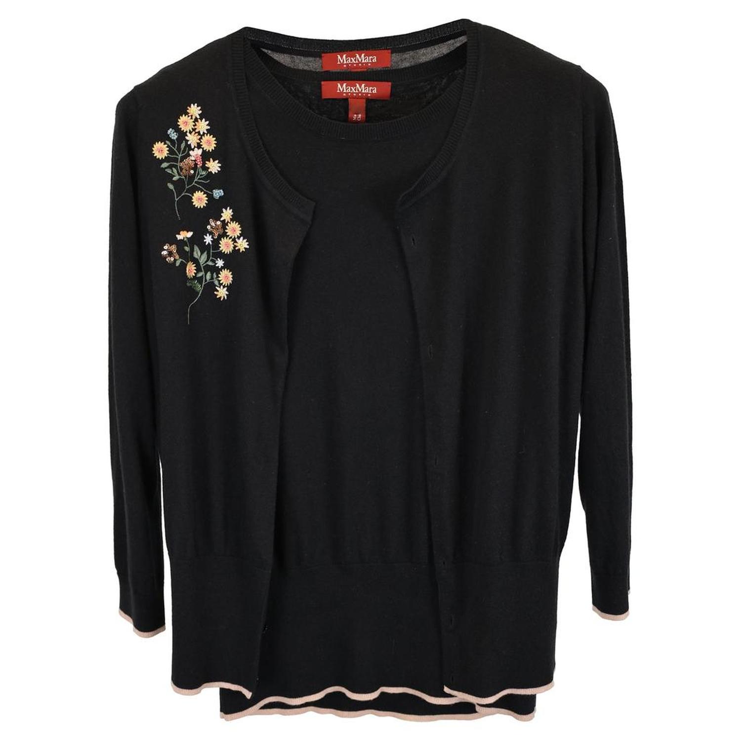 Max Mara Flower Embroidered Cardigan with Knit Top Set in Black Wool